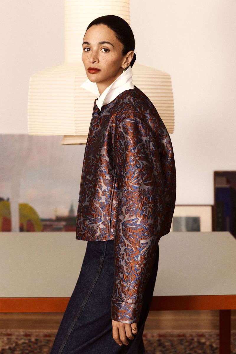 Derek Lam 10 Crosby秋冬 2024 高级成衣繁花似锦,蓝边褐色与深米色底的相邻色相辅相成浅色的穗穗叠加着服装的层次感丰富·