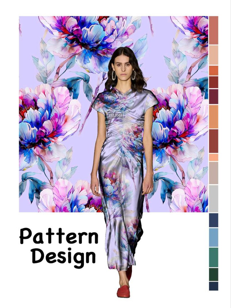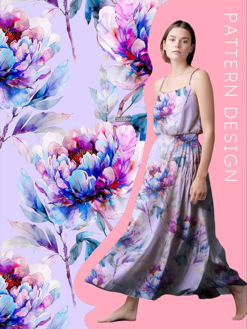 泼彩水彩画牡丹,穿了用他做的絲绸服装,将突显女士的气质