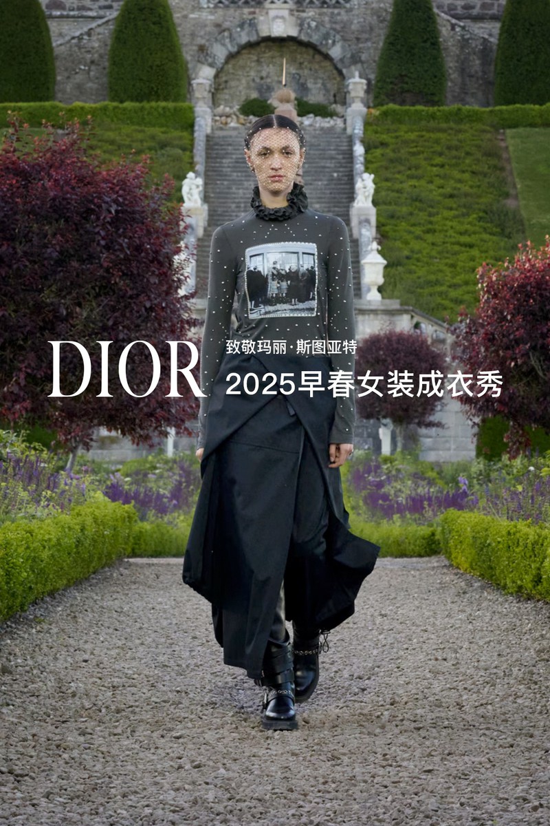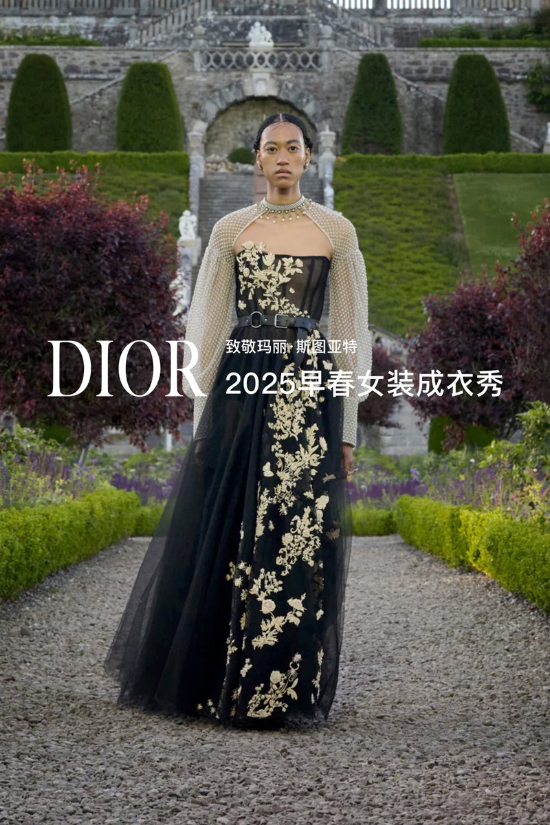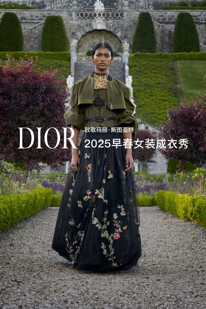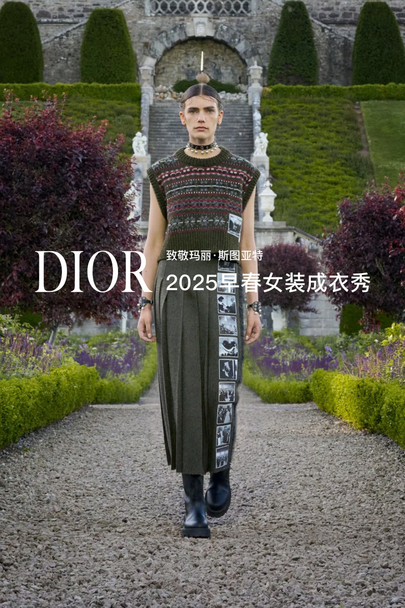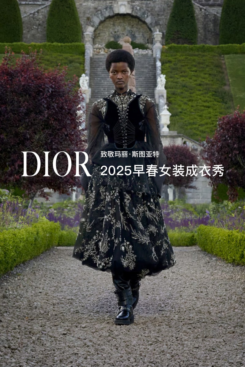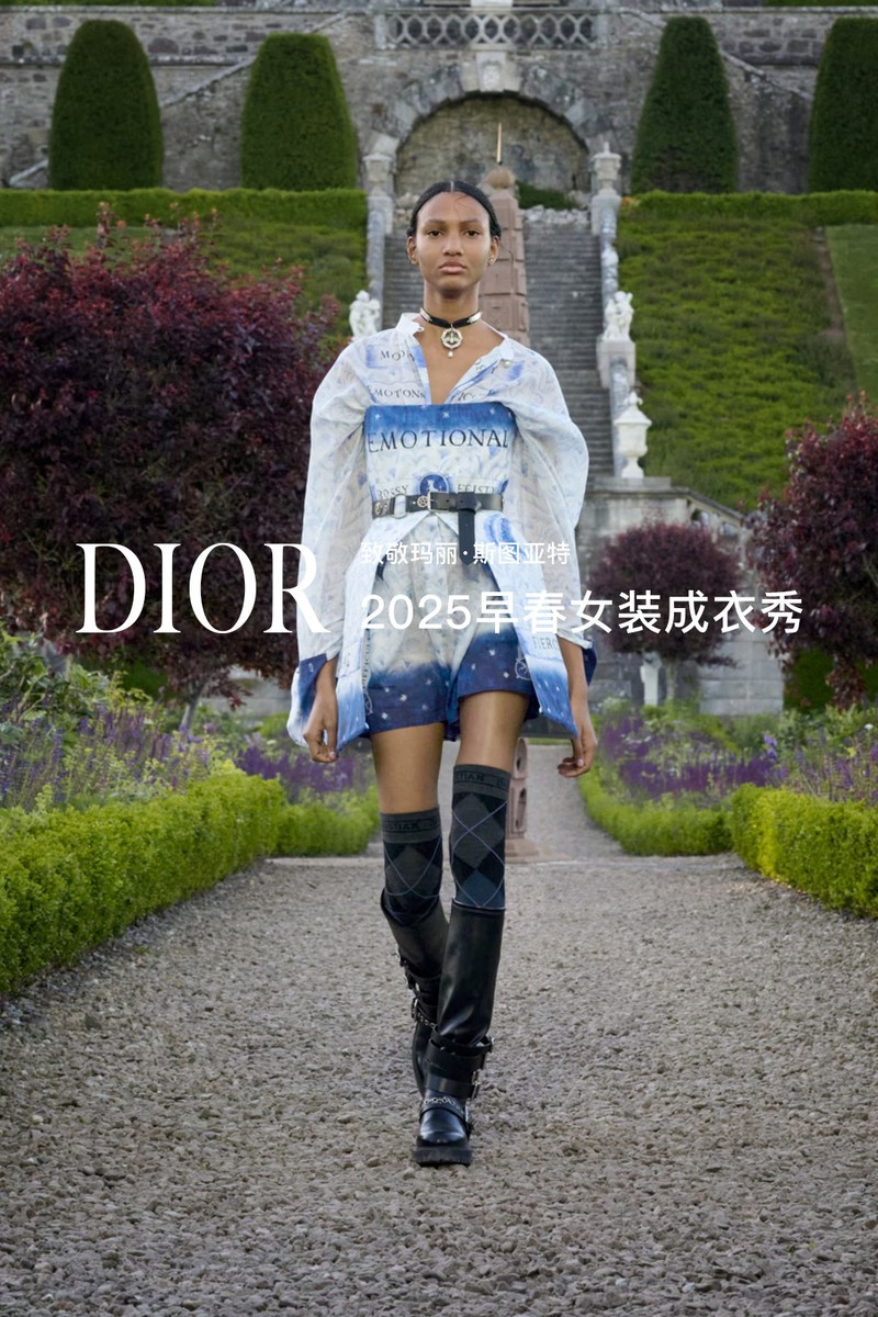 DIOR 2025早春女装成衣秀。全新系列采用苏格兰特有的纹章刺绣工艺打造全新万千繁花(MILLEFLEURS)图案,并以独角兽与蓟花等苏格兰象征符号,呈献这一精湛卓绝的技艺语言。作为本季系列的灵感来源地,手绘的苏格兰地图映现于多款造型之上,以地域版图生动勾勒出合作对话与文化交流,致敬了苏格兰格呢这一重要面料。