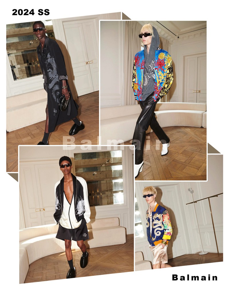 Balmain SS24 menswear男装中运用了多种中国风元素,如龙、虎、燕子、牡丹等等。