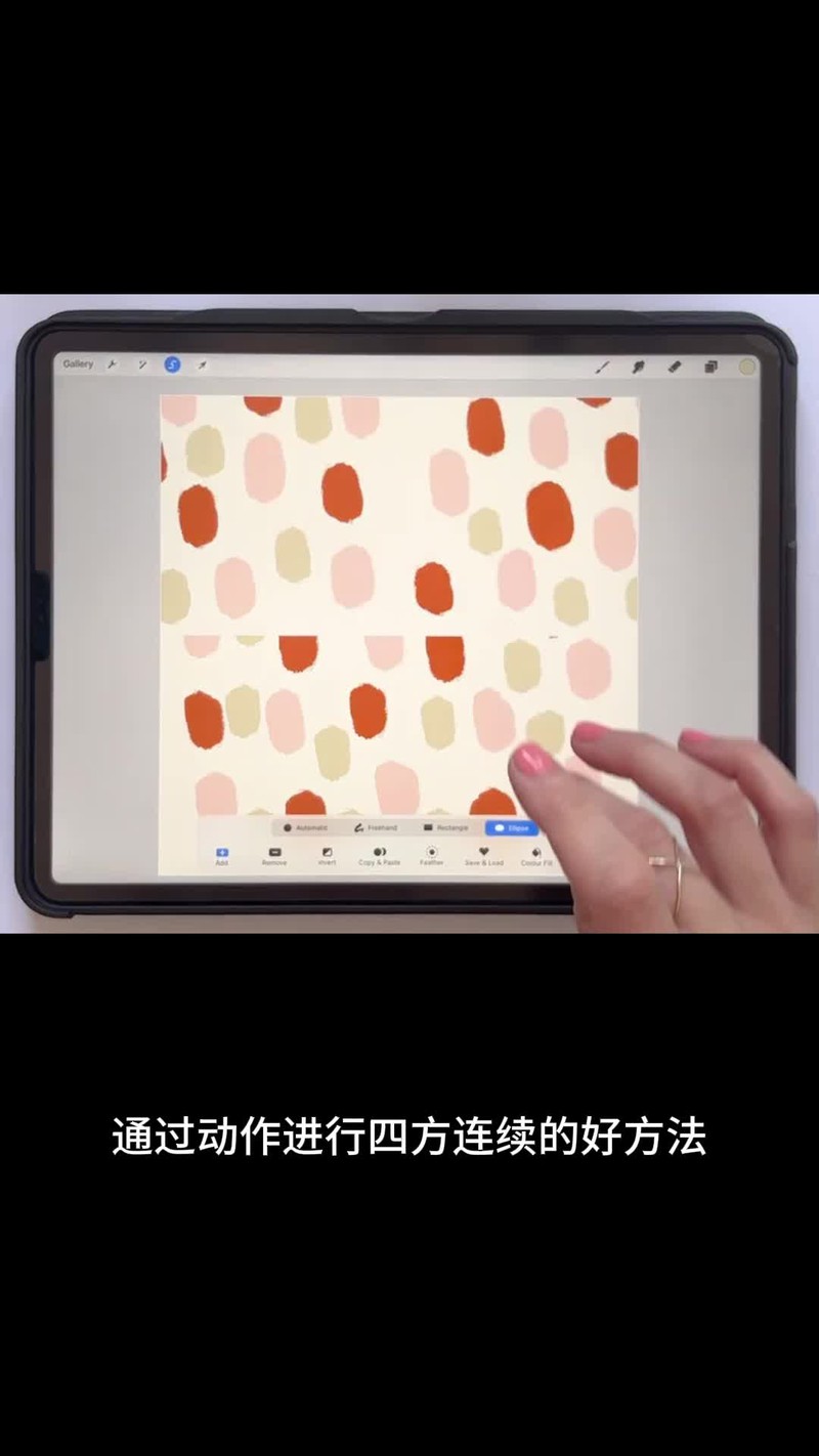 又挖到一个Procreate设计四方连续的好方法!另一种通过划分选区的动作进行四方连续设计的好方法,而且它可以一直重复使用,算是一个模板了,大家可以去试试看~
