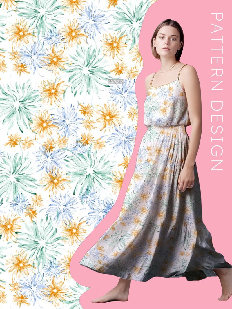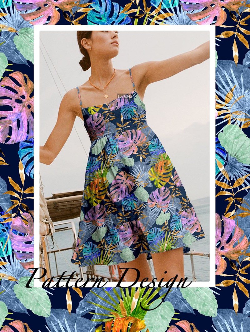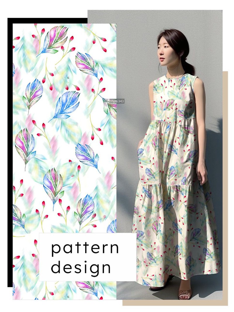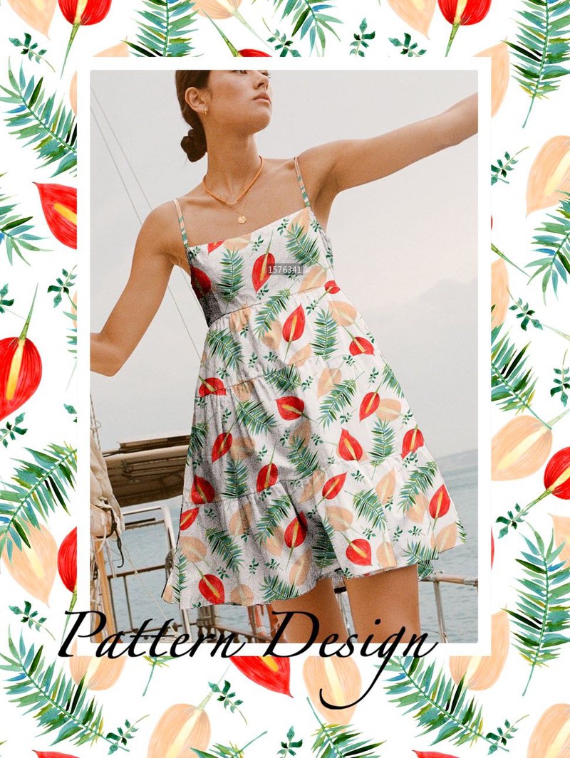 关键词:植物,2024春夏,热带植物,水彩肌理,女装