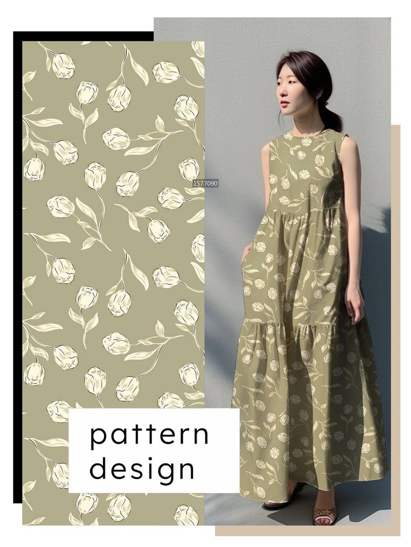 简约化处理的剪影花卉印花,重点强调色彩的运用,春夏可以多尝试