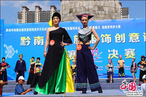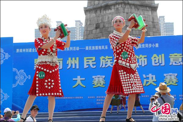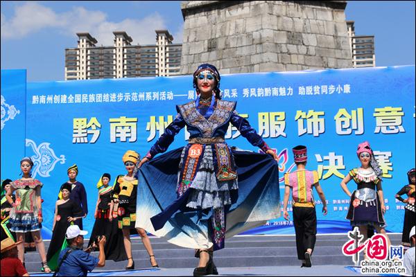7月18日,黔南州民族服饰创意设计大赛决赛在都匀市文峰塔广场精彩上演,福泉原生态民族服饰精彩纷呈。