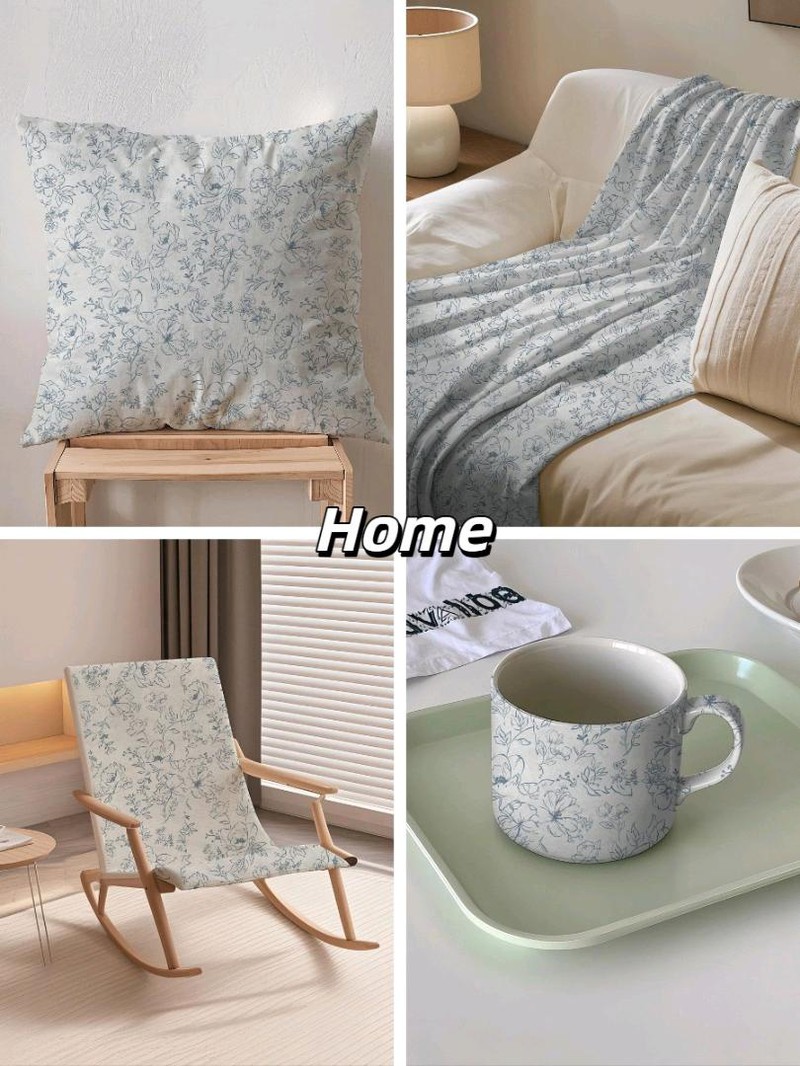 蓝白花卉布艺,装点家居,尽显清新雅致。
