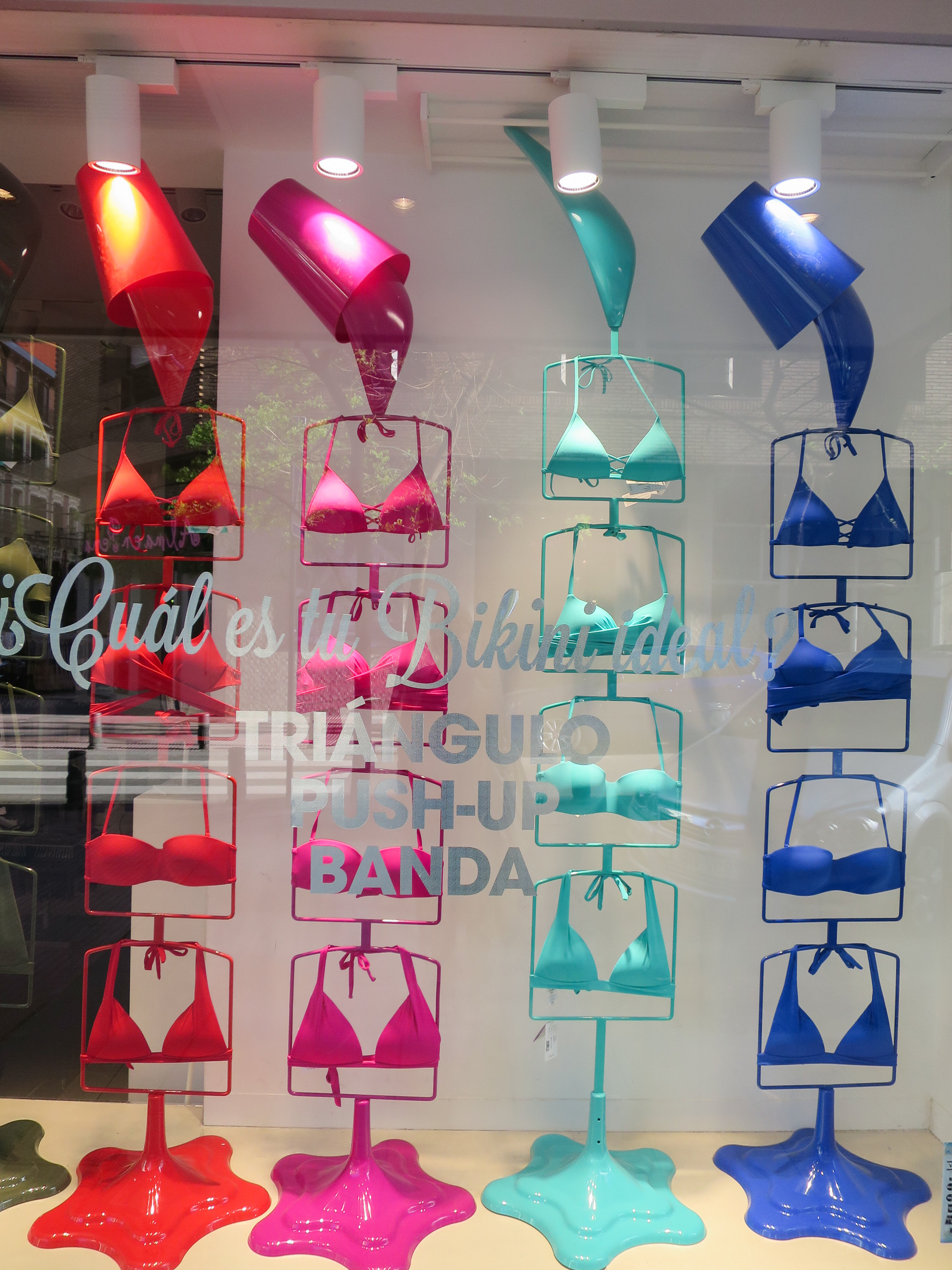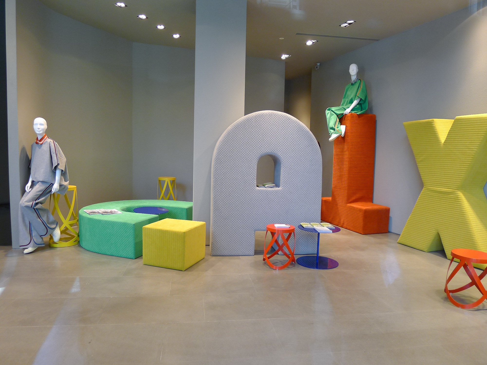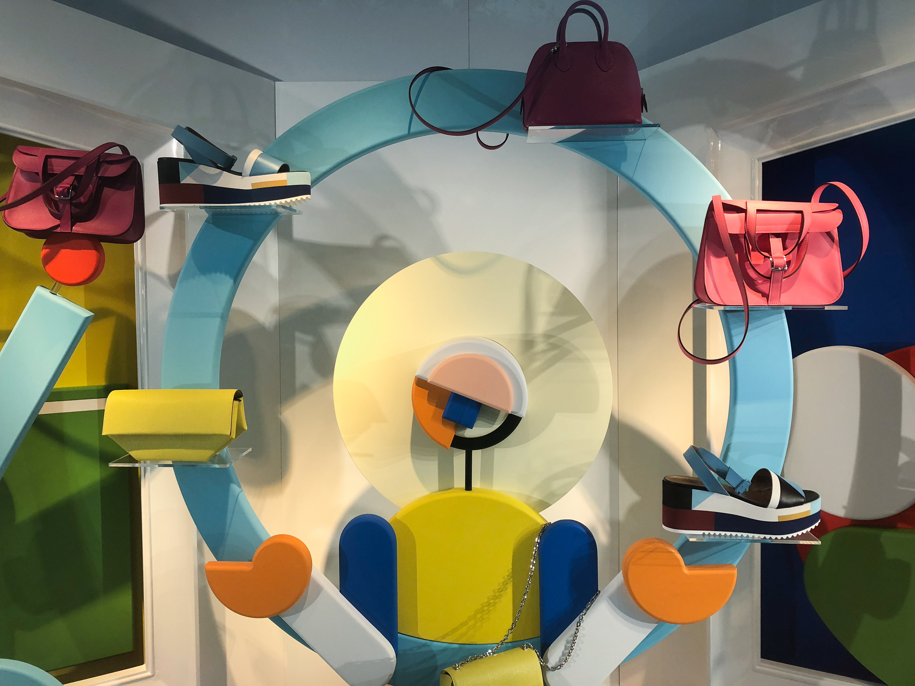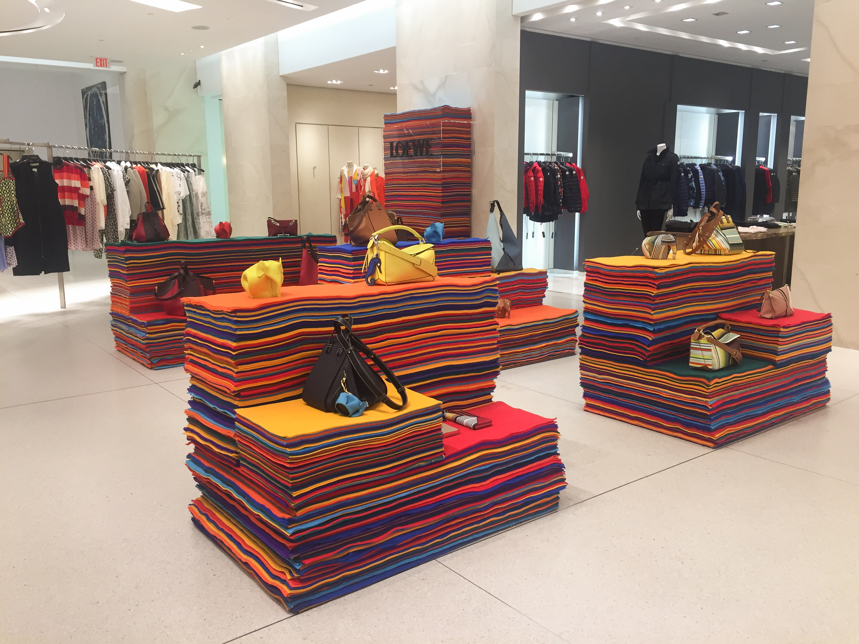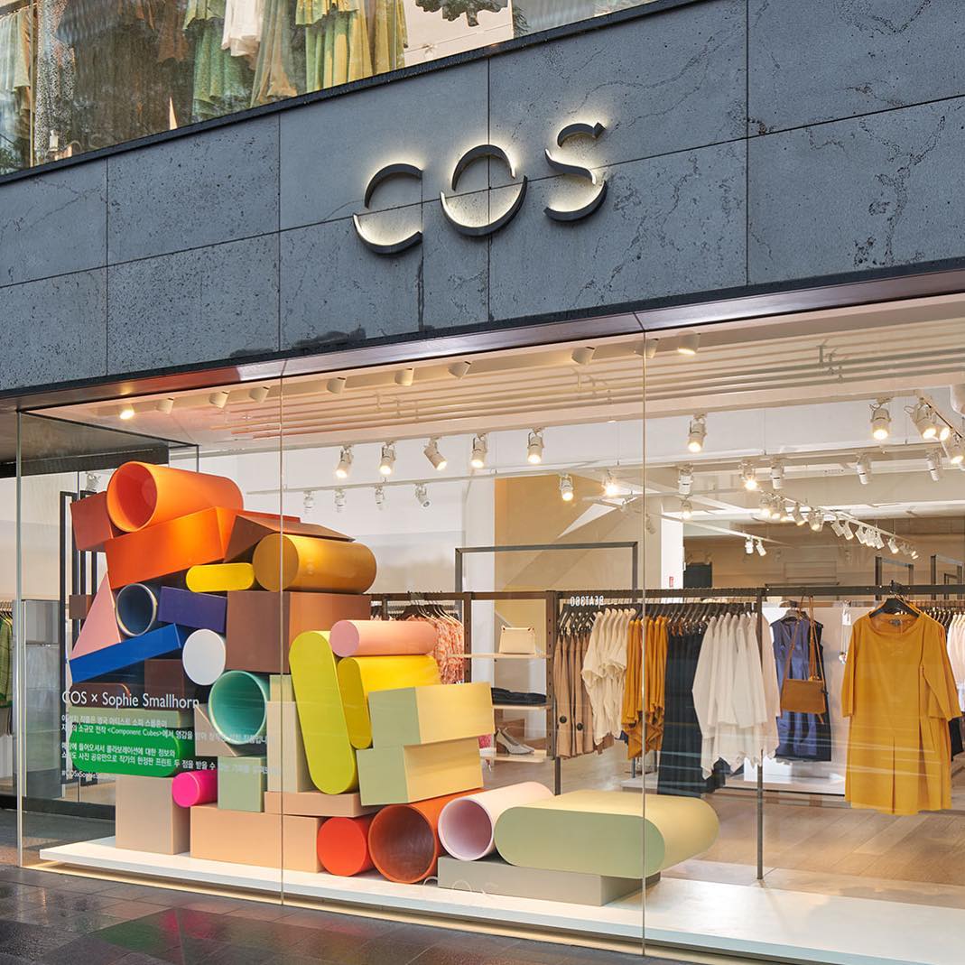 无论是富有艺术气息的装置作品还是陈列装置、促销商品,色彩斑斓的色调贯穿始终。Cos与艺术家Sophie Smallhorn携手,设计出了多彩的雕塑装置作品,它们看上去似乎随时会倒塌。在Holt Renfrew购物中心,堆叠起来的彩色毛毡被当成了临时的展示装置。意大利女装品牌Calzedonia打造让人产生错觉的浇注绘画作品与色块风格的促销商品,将两者结合到一起。