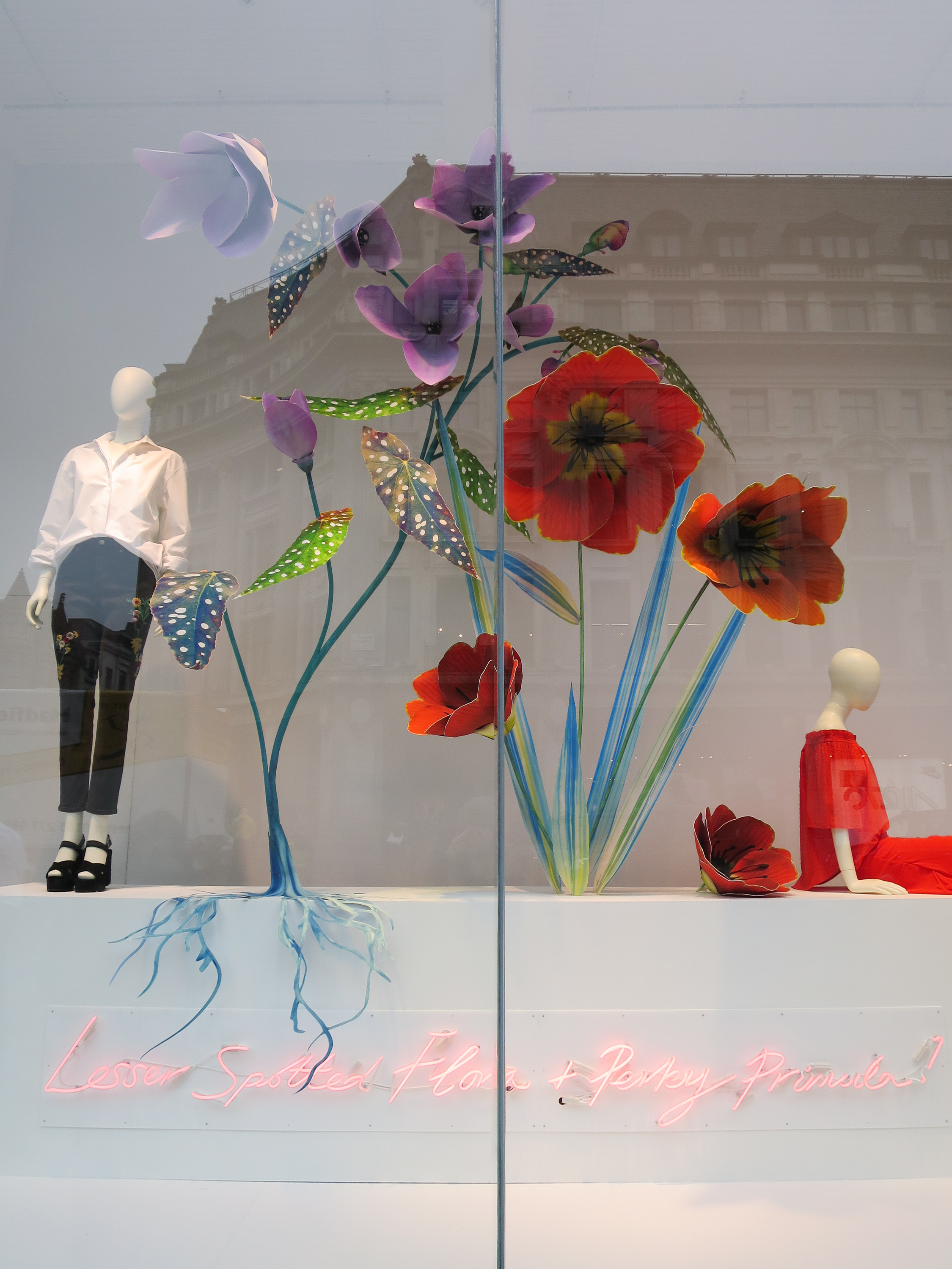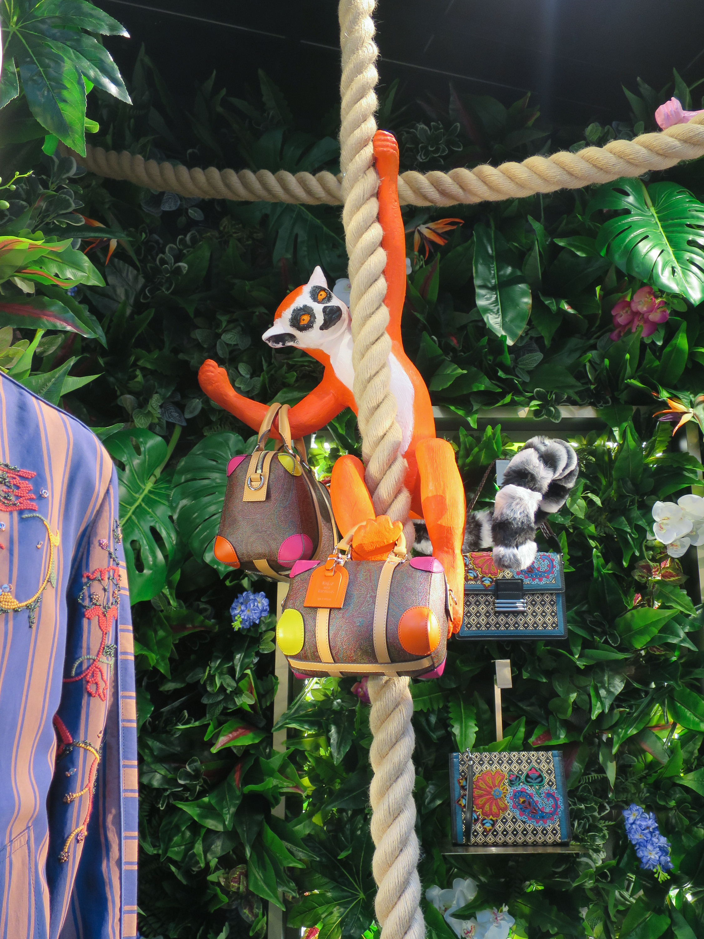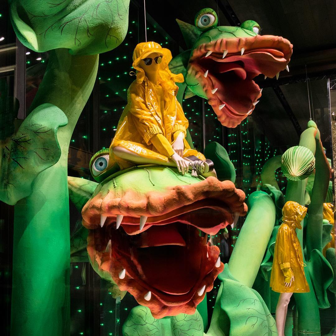 充满生气的热带雨林和浪漫的丛林场景在橱窗中重现。Moncler的橱窗里,巨大的豆茎活灵活现,一只戴着运动太阳镜的老虎在塞尔福里奇百货商场里咆哮。淘气的动物们在绳子上荡来荡去,手里还拿着带子和鞋子。在Etro,淘气的动物们从绳子上荡来荡去,手里拿着袋子和鞋子。Harlequin设计了12片独立铸造的叶子,叶子表面刷了一层超光泽度的涂层,这些装置作品是为了展示Michael Kors的盛夏新品。而H&M则让五颜六色的花朵盛开在人体模特之上。
