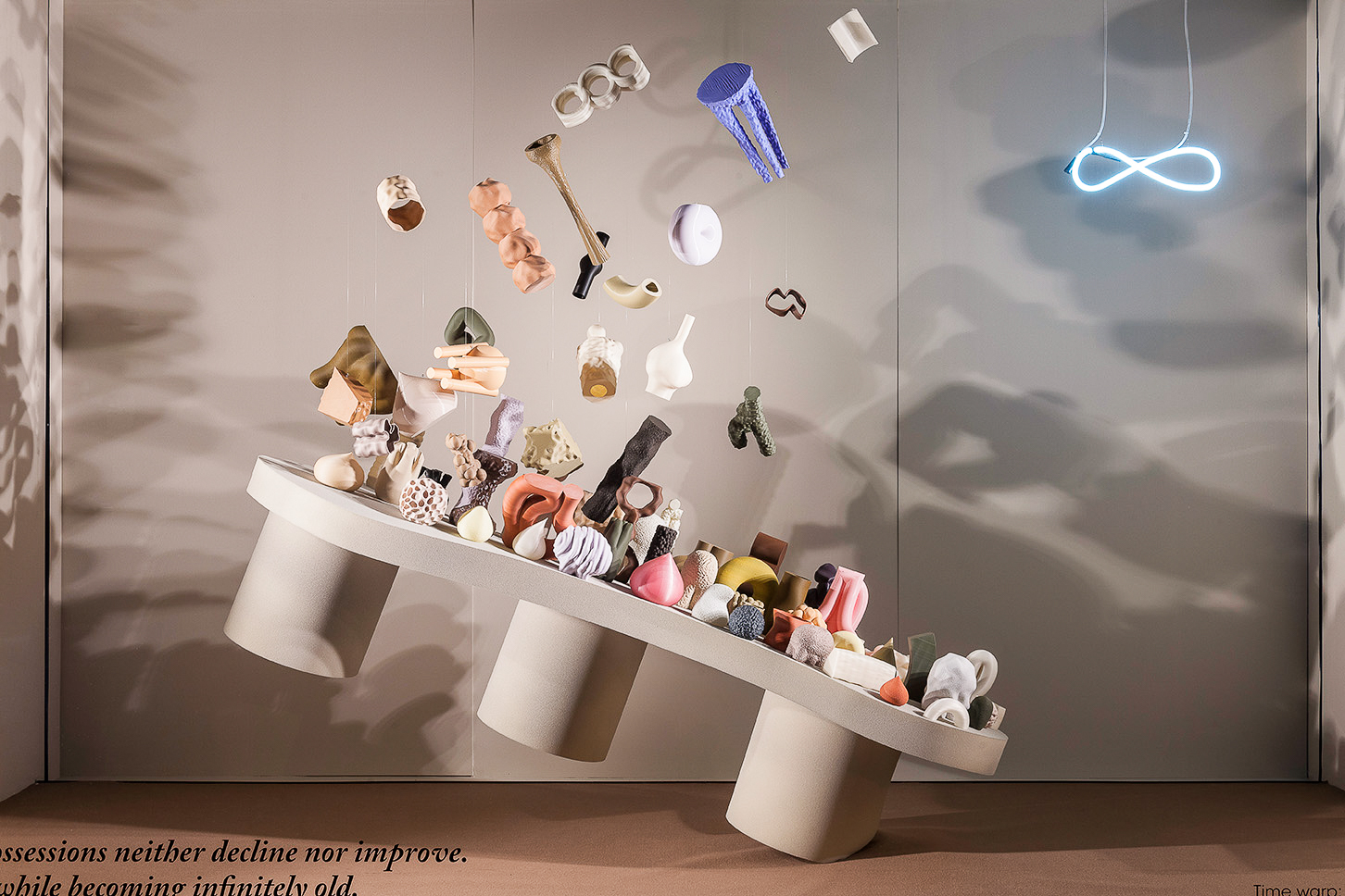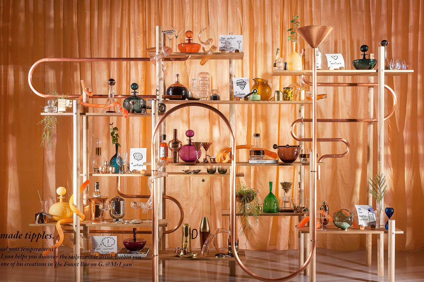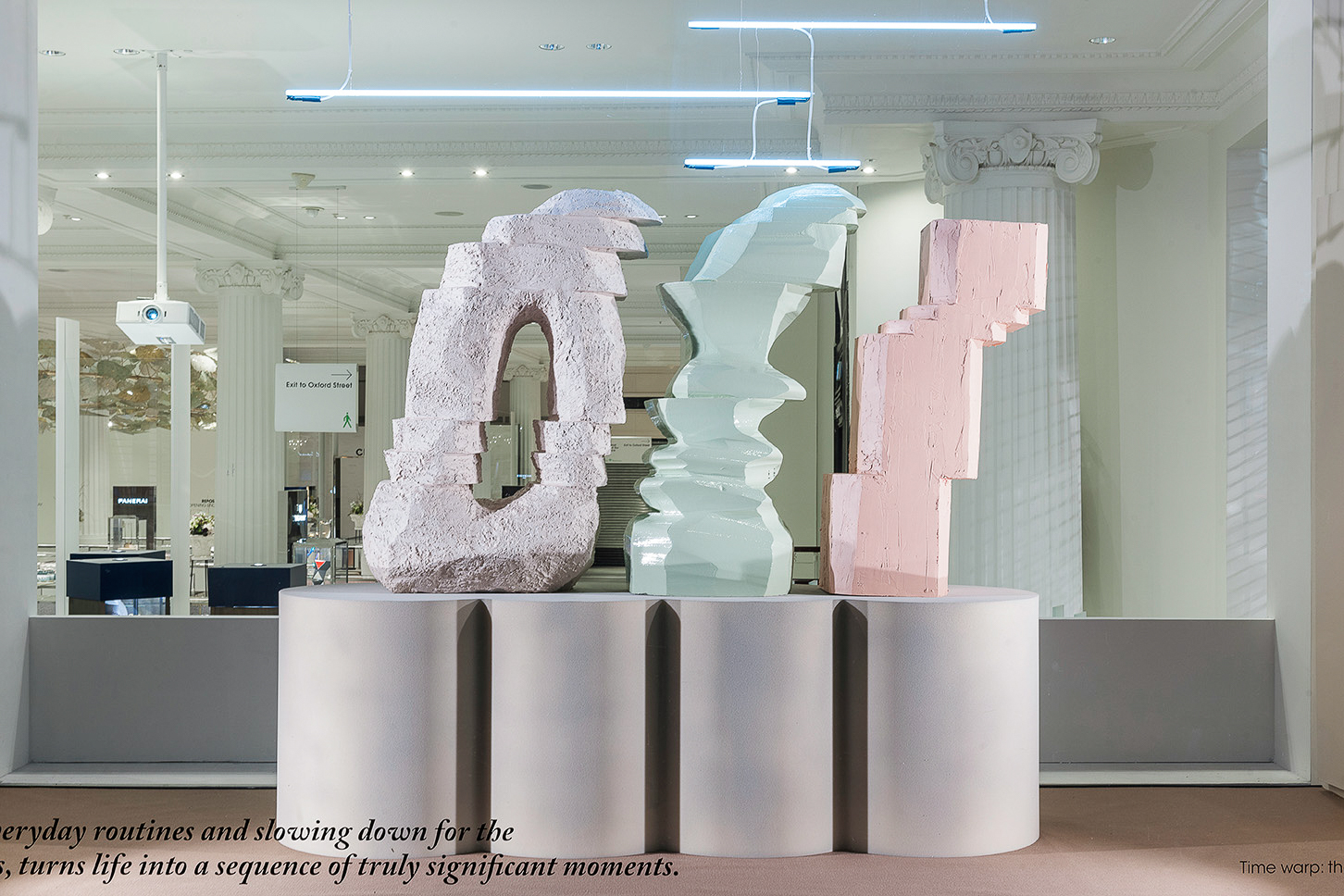 近期,塞尔福里奇百货公司Radical Luxury橱窗系列的第二期已与大众见面,通过探索事物和探索重新定义事物价值的创意,再次寻找奢侈品的真正意义。向上翘的桌子、脱节的雕塑、杂乱堆叠的复古音响和电视占据了整个空间。另一个装置则对未来的美容产品是否使用纯天然成分制成提出质疑,该装置是放置在加热灯下的植物槽。