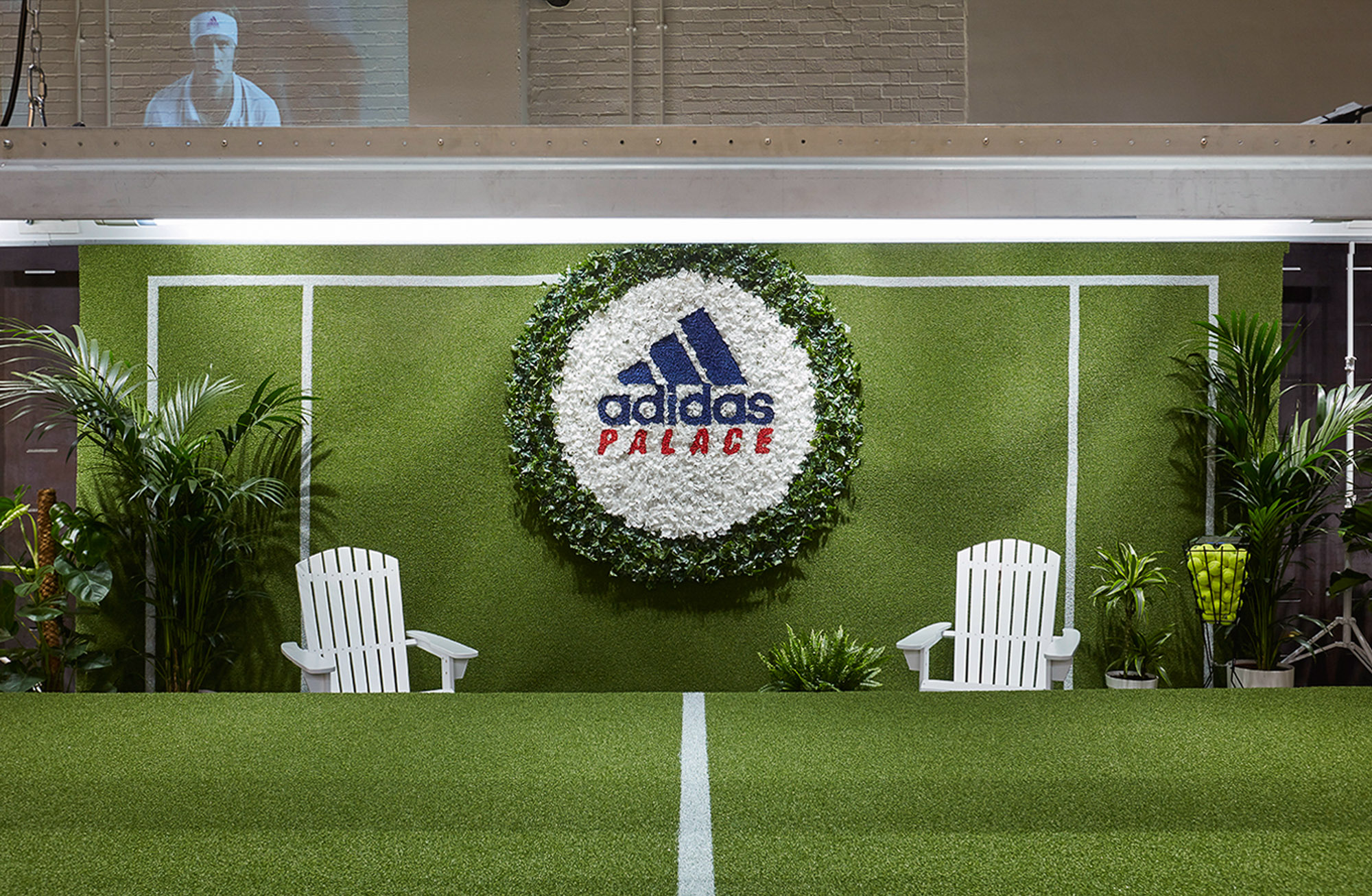 滑板品牌Palace与阿迪达斯最新的合作款是具有上世纪70年代风格的一款限定系列,以此来庆祝即将开赛的温布尔登网球锦标赛。由Studio Xag设计的装置作品,将温布尔登中央球场搬到了阿迪达斯的Hanbury Street商店中。阿斯特罗人造草皮覆盖的墙壁环绕着一个展示台,受温布尔登花圃启发的花冠配备了帆布躺椅、沁人心脾的绿色植物和球篮。