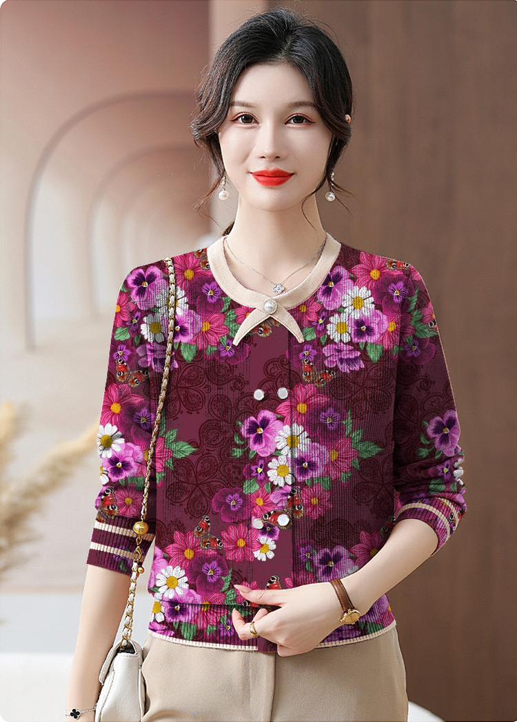 关键词:图案趋势,2024早秋,印花,中老年花卉,深底花卉