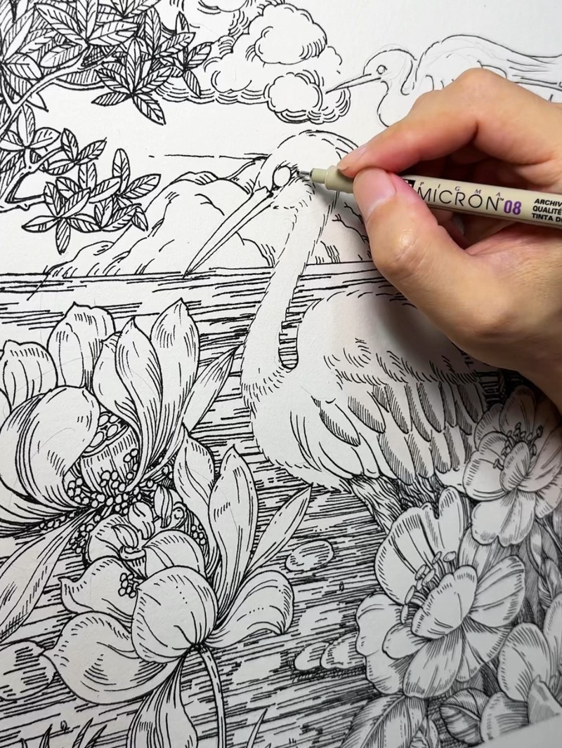 真的好喜欢线描画!针管笔下的花花草草