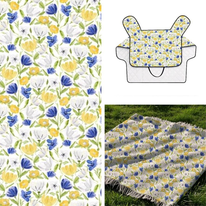蓝黄白花铺野餐,春日浪漫尽收囊中。