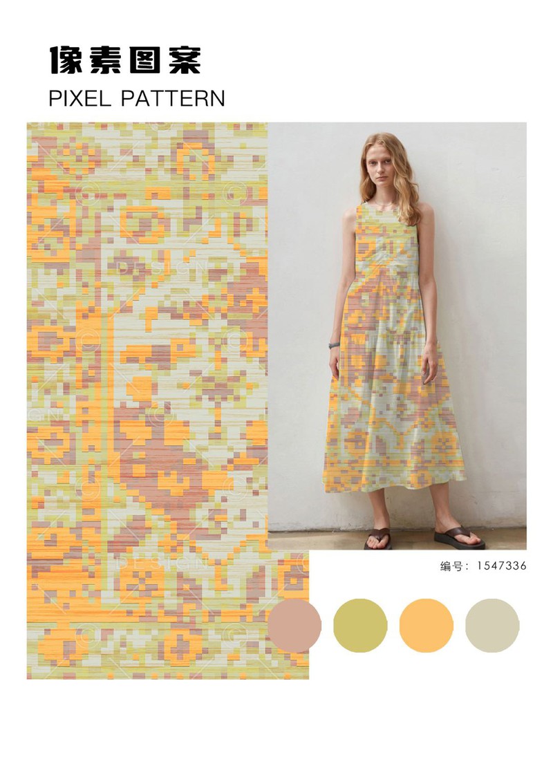 关键词:像素,2025春夏,印花趋势,图案趋势,马赛克