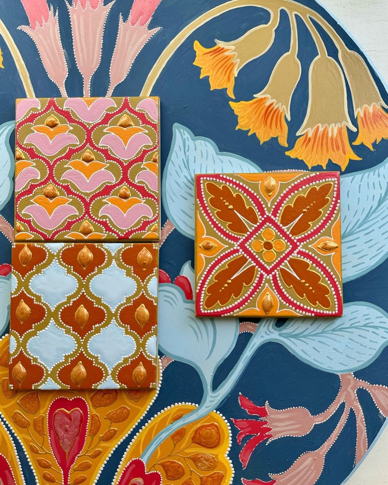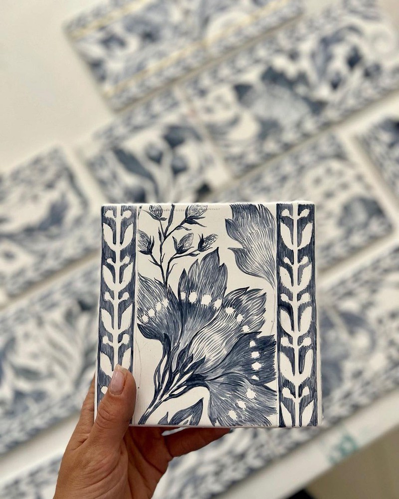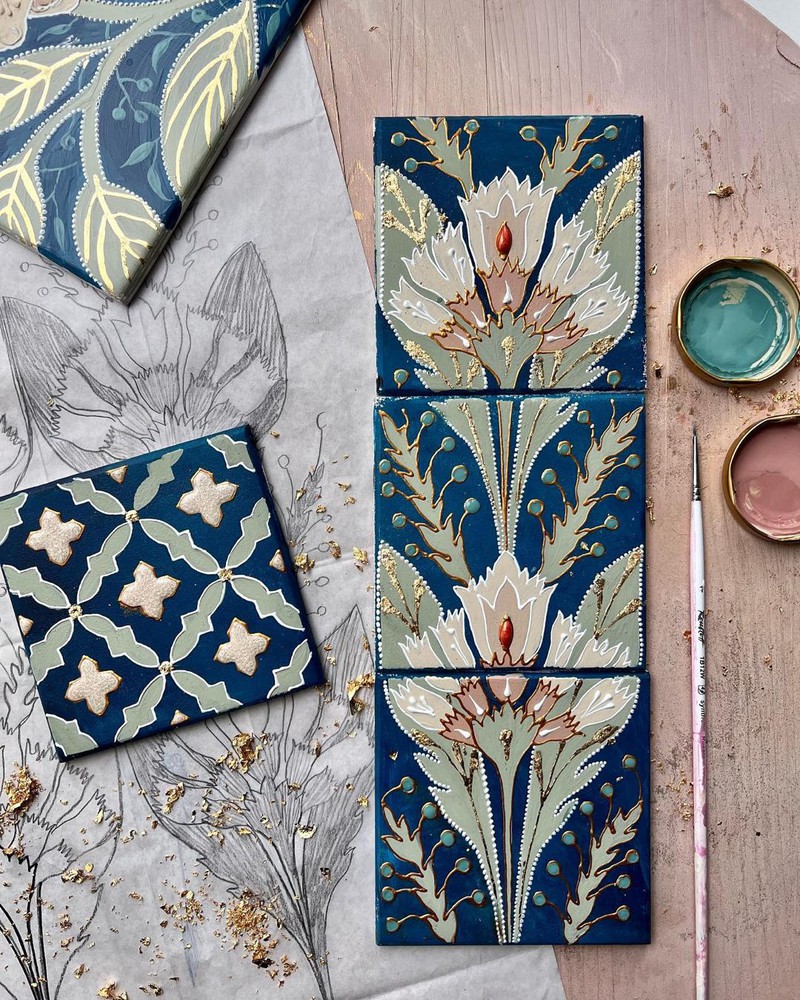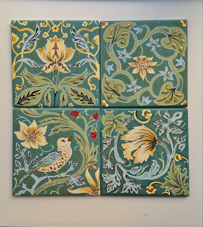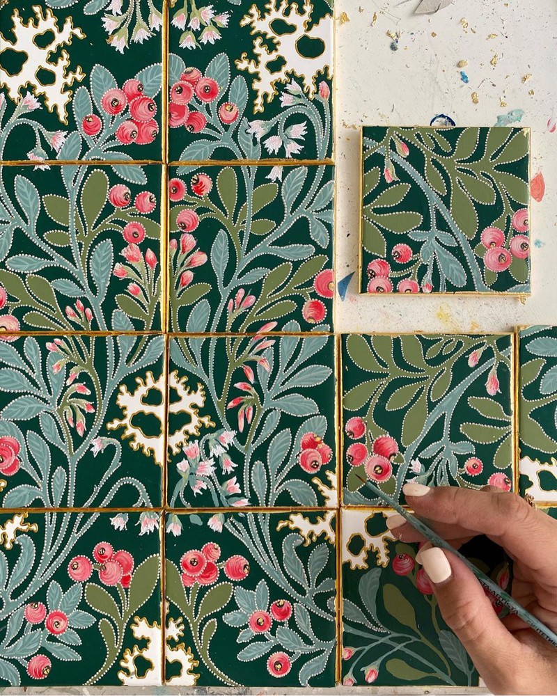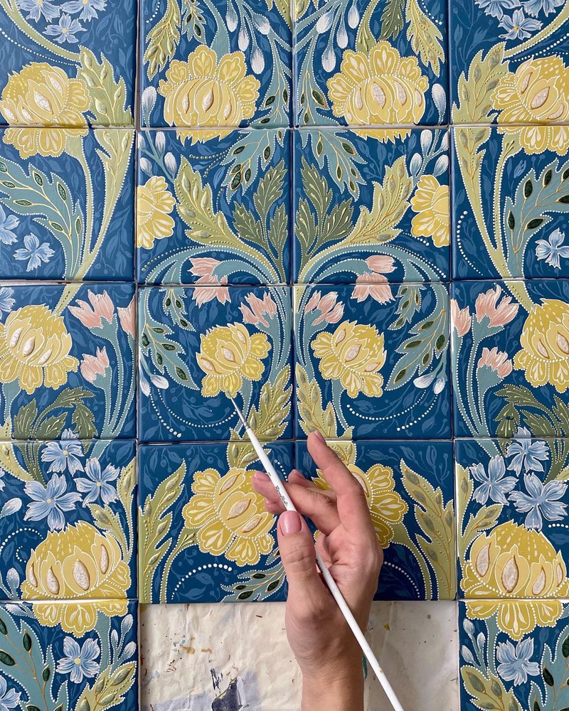 艺术家Anastasia Ropalo以瓷砖为载体的装饰纹样住在奥伦堡的艺术家Anastasia Ropalo以瓷砖为载体,表达自己的艺术创意,她的设计风格以新艺术运动时期的植物装饰图案为灵感,有点像是威廉·莫斯利的作品,各种植物花卉缠绕在一起,再搭配上复古的配色,设计出繁复主义的装饰图案。而且,在今年Etro最新的秀场上,我们也看到这种装饰主义的花纹正在回归~