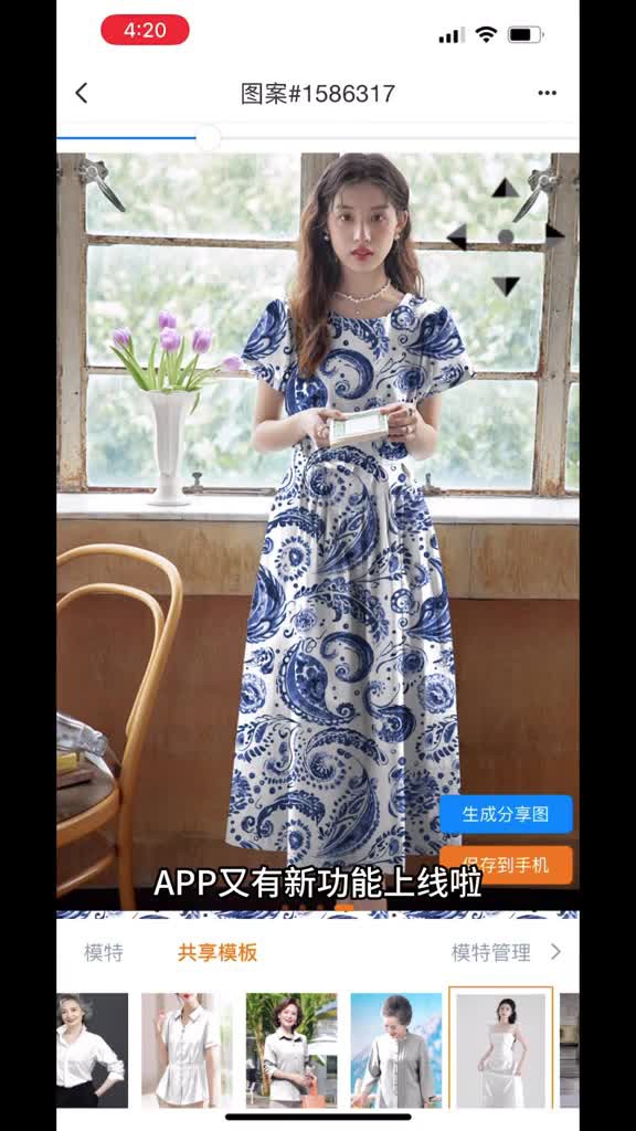 华亿平台图案设计师看这里~一键生成效果图 APP又有新功能上新了,上次有设计师反馈想要这种左边模特右边华亿平台的效果图,这不就来了嘛~一键保存就能转发给客户挑选啦,要的就是效率!