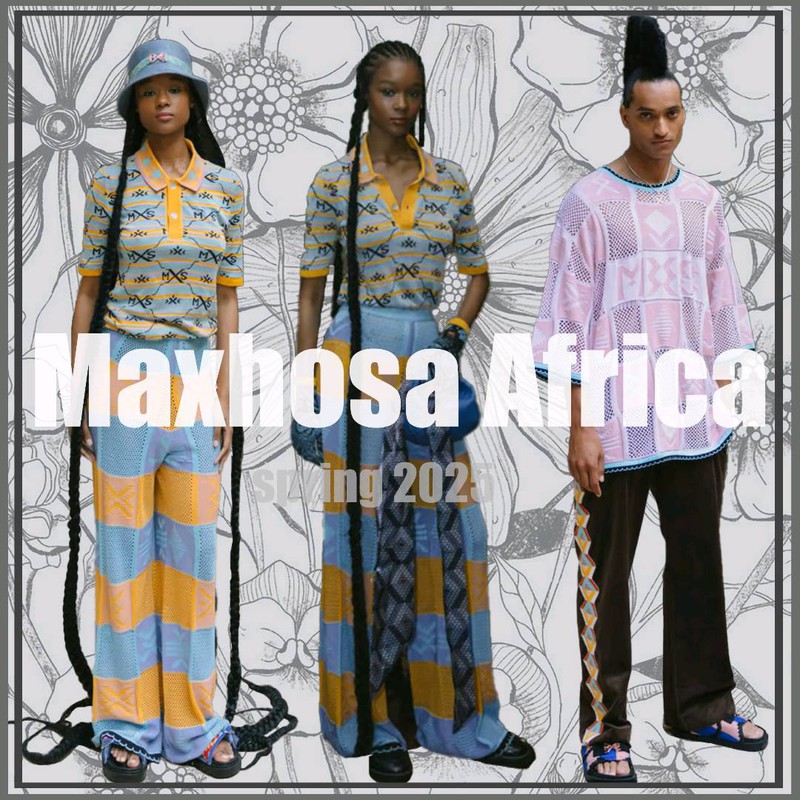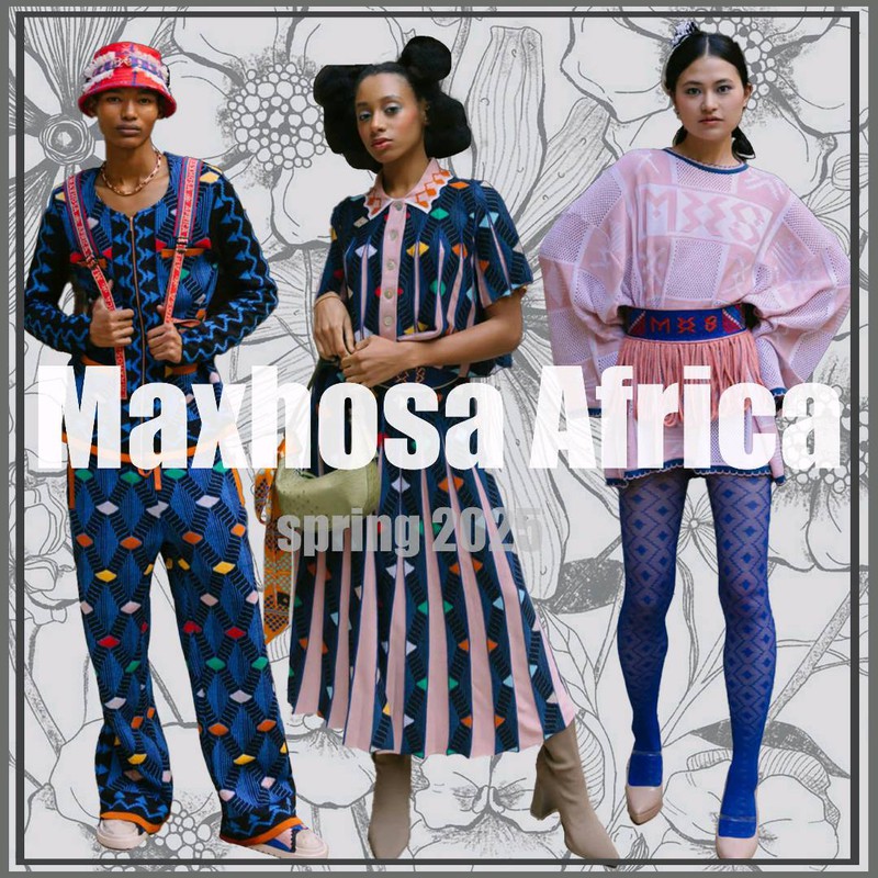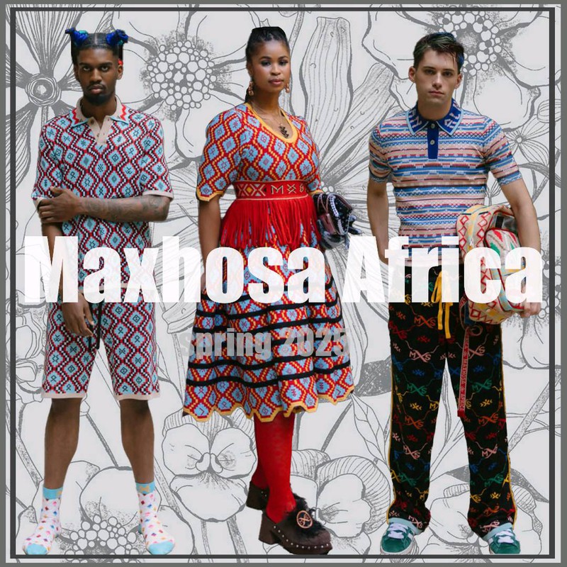 Maxhosa Africa spring 2025科萨文化中的传统工艺品和图案与非洲文化元素相结合,半贝壳上的金星吊带背心,带有层层虹彩鱼鳞和摇曳的珍珠流苏,五颜六色的POLO衫和衬衫,与引人注目的图形连衣裙混搭。民族风的整个系列绚烂神秘