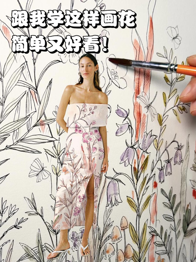 神仙画法!用线描+水彩画出清新花卉线描+水彩的方式画花卉图案