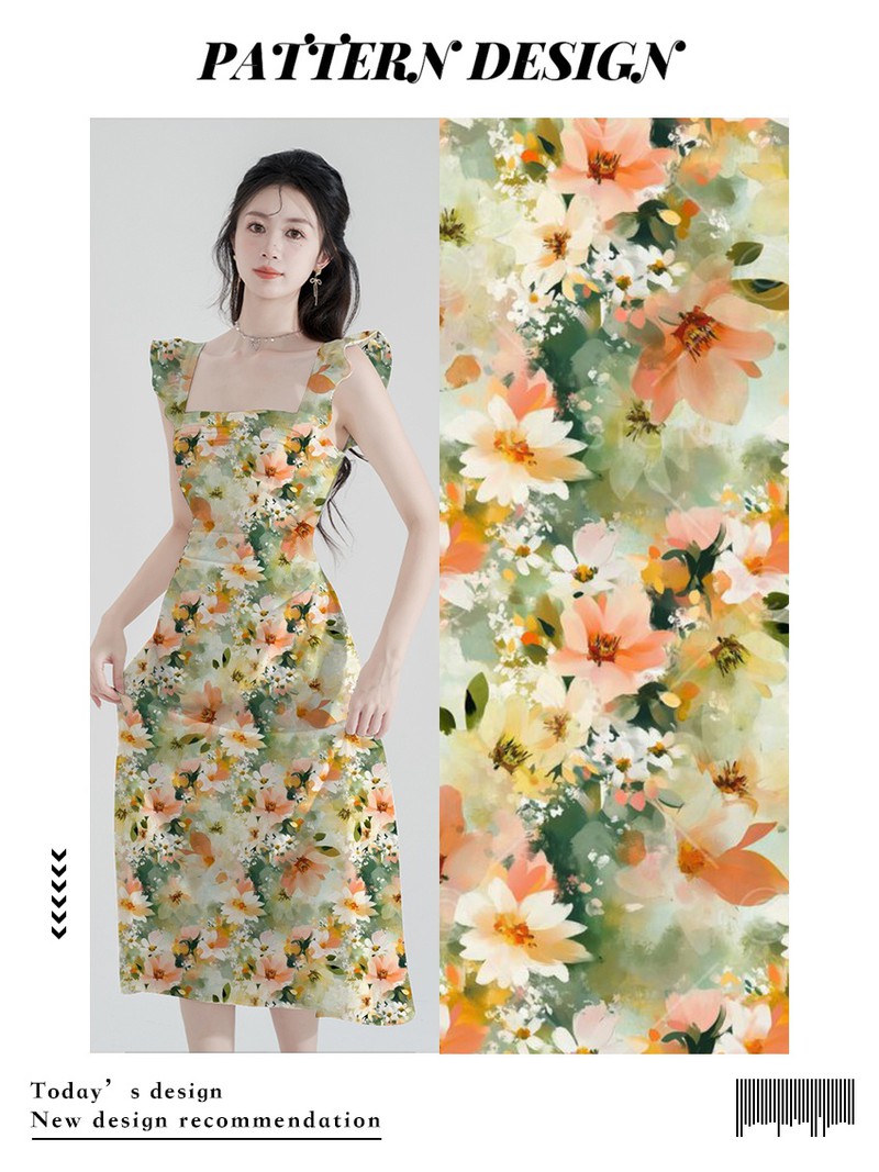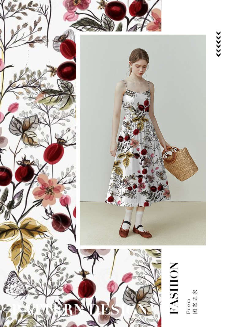 关键词:年轻女装,华亿平台推荐,印花连衣裙,水彩花卉,植物