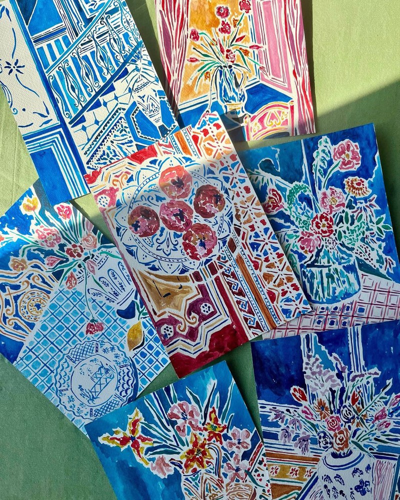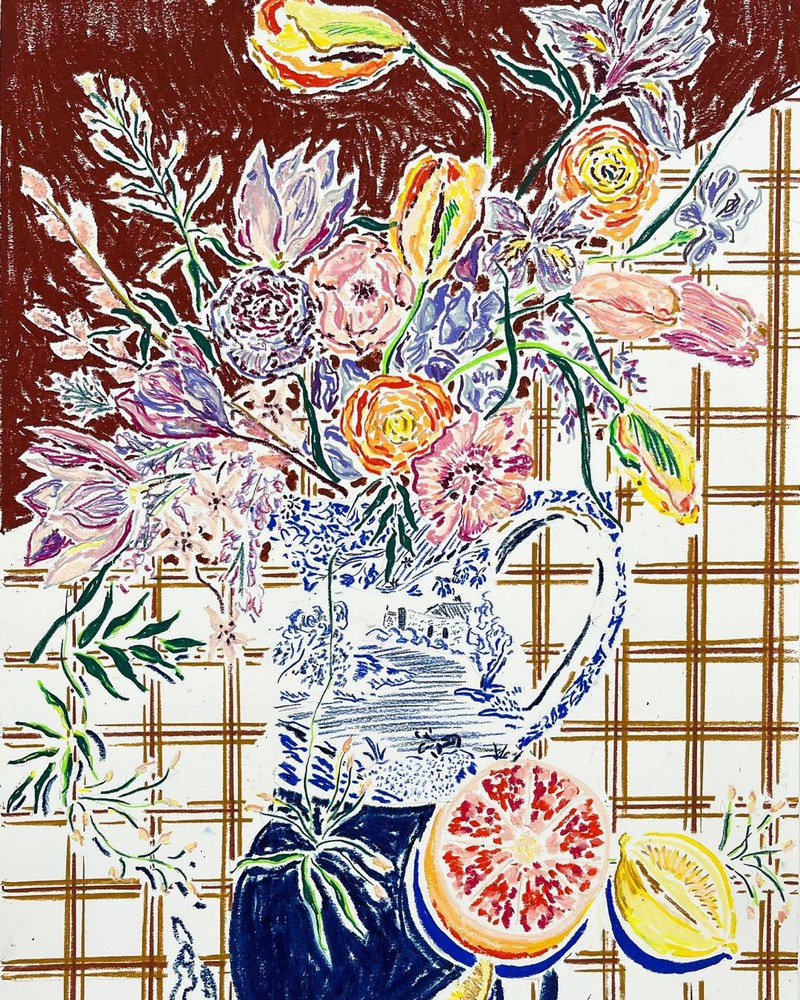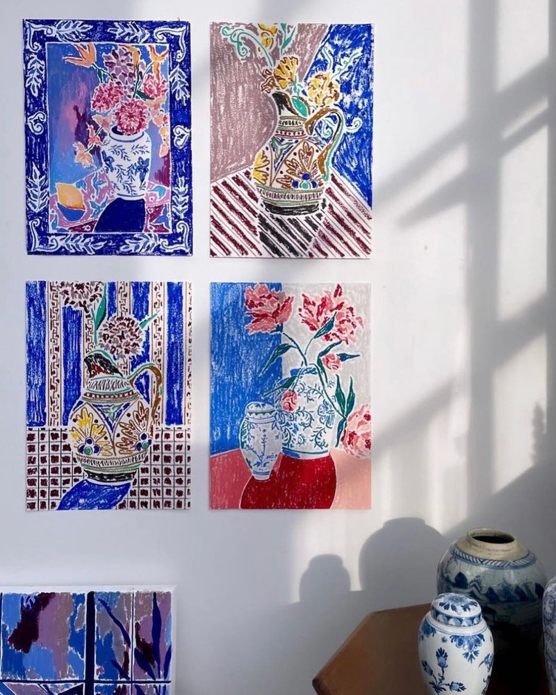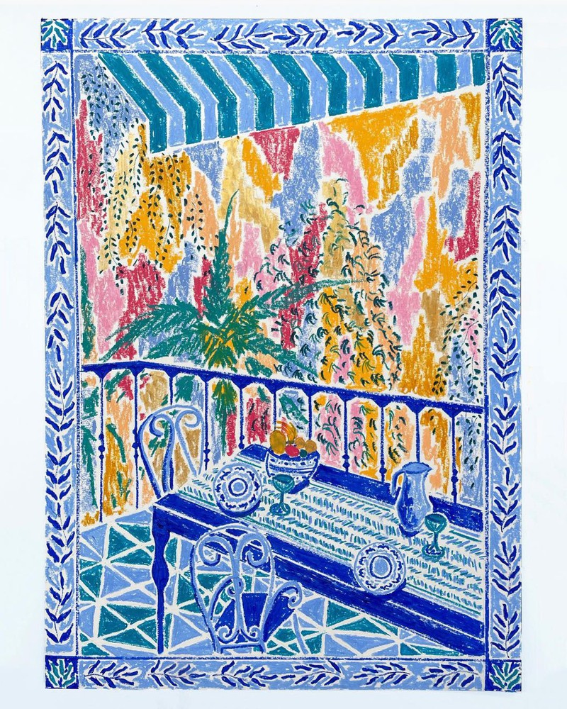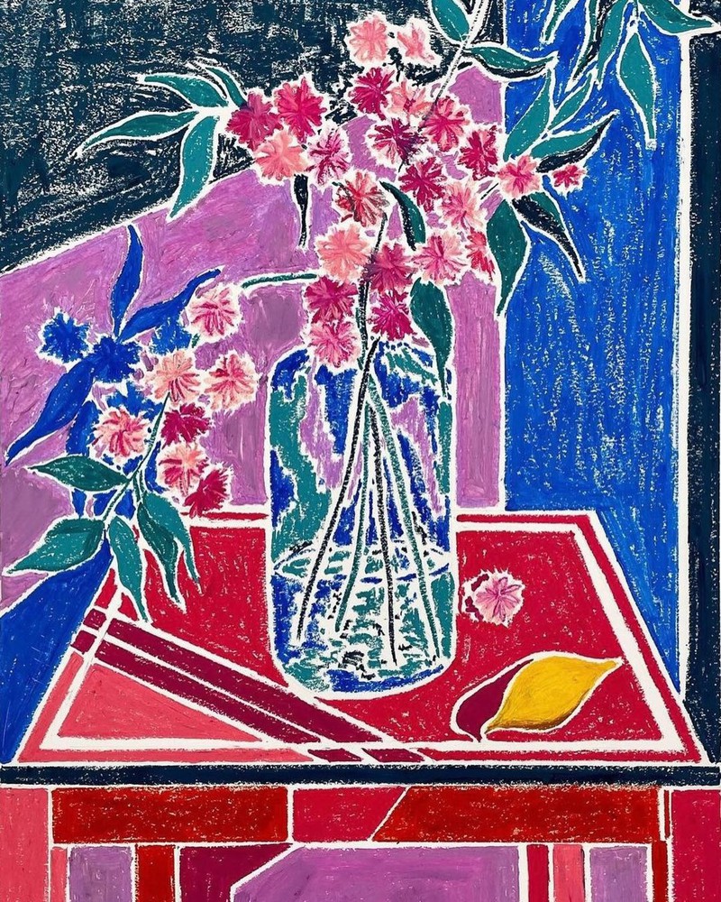 图案灵感 | 艺术家Kate Mary的油画棒花卉格拉斯哥艺术家 Kate Mary用她标志性的油画棒描绘出各种令人惊叹的静物场景,尤其是那些窗景下的花卉,丰富的色彩表现力让人联想到马蒂斯的作品。 她整个图案的构图让我们迷失在形状、颜色、线条的交错中,对颜色的选择在这些场景中创造了舒适的平衡。对于绘画的题材,也多来自旅行和日常生活的影响,比如食物、植物和餐具,以及旅行启发的瓷砖花纹和格子元素,带来超级有活力的图案灵感。