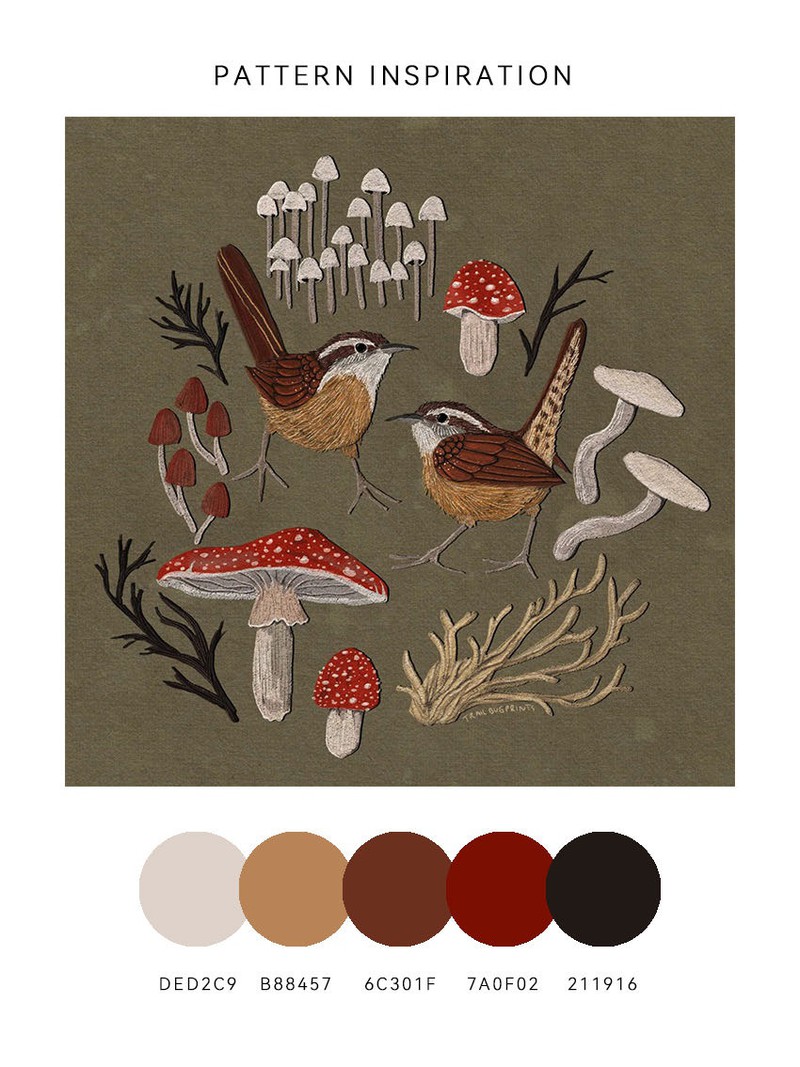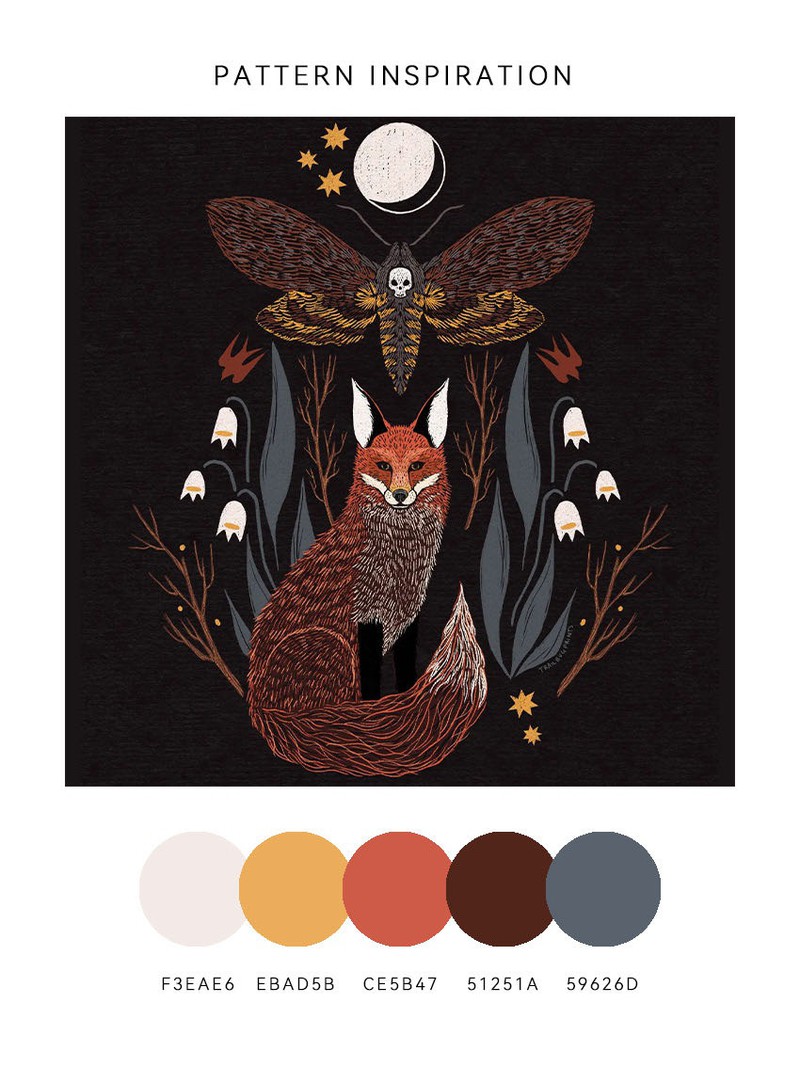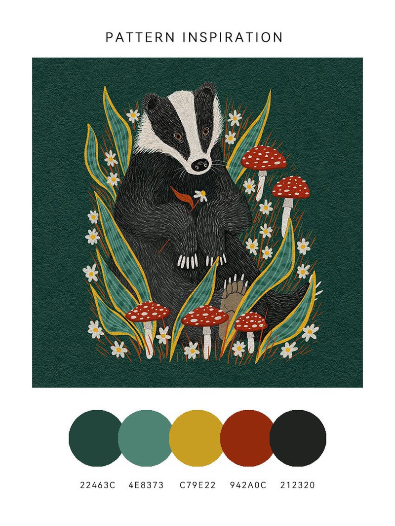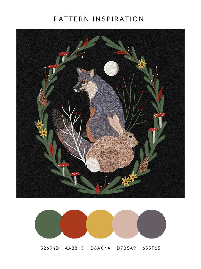 图案灵感|艺术家Sarah Kiser的自然诗意画作在北欧艺术家 Sarah Kiser的作品中动物往往是重要的主角,占据中心位置,花草、蘑菇等植物点缀其中,将动物结合植物,打造出充满奇幻风格的艺术作品。从色调到构图有着浓厚的神话色彩,让人看见自然万物的生命力。在色彩方面,Sarah Kiser 没有使用大胆鲜明的色调,而是以明度较低的色彩,打造出一幅幅致敬自然神秘力量的画作。