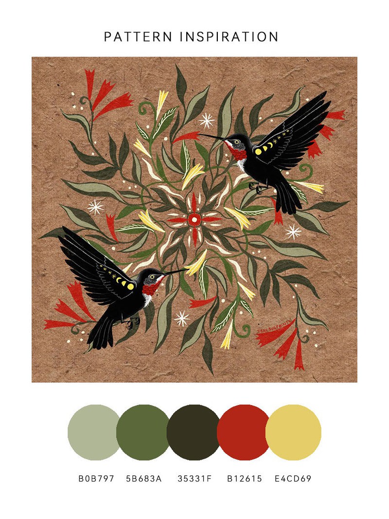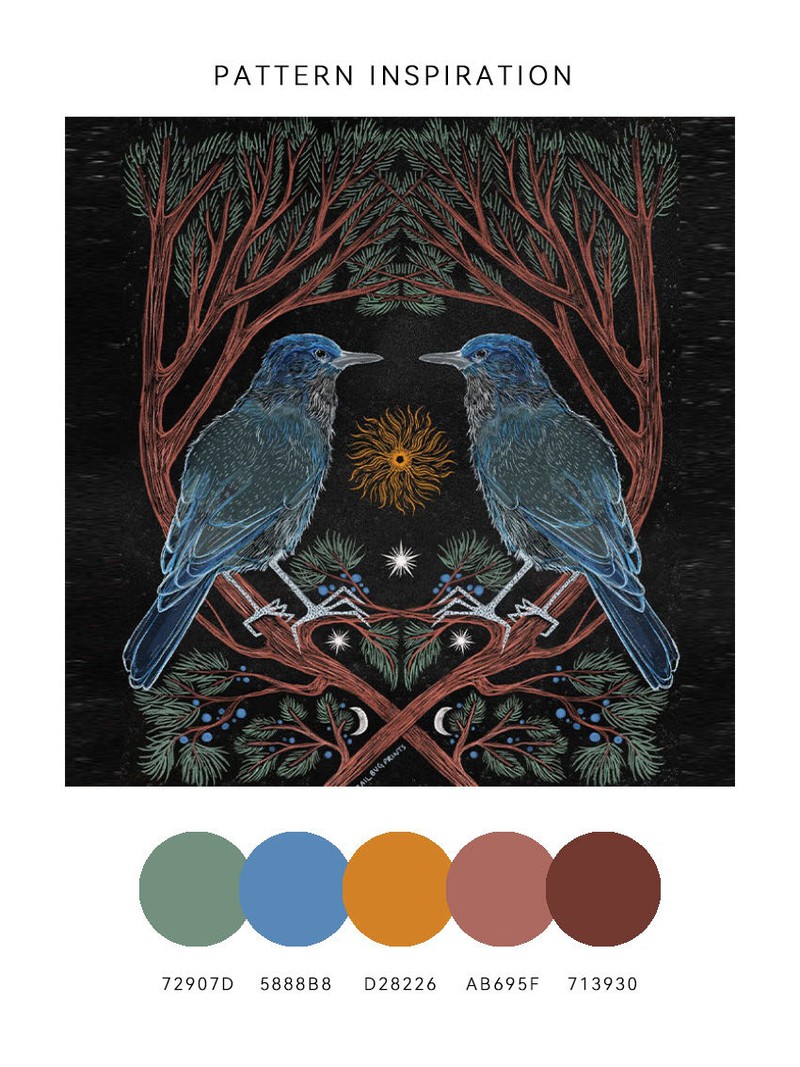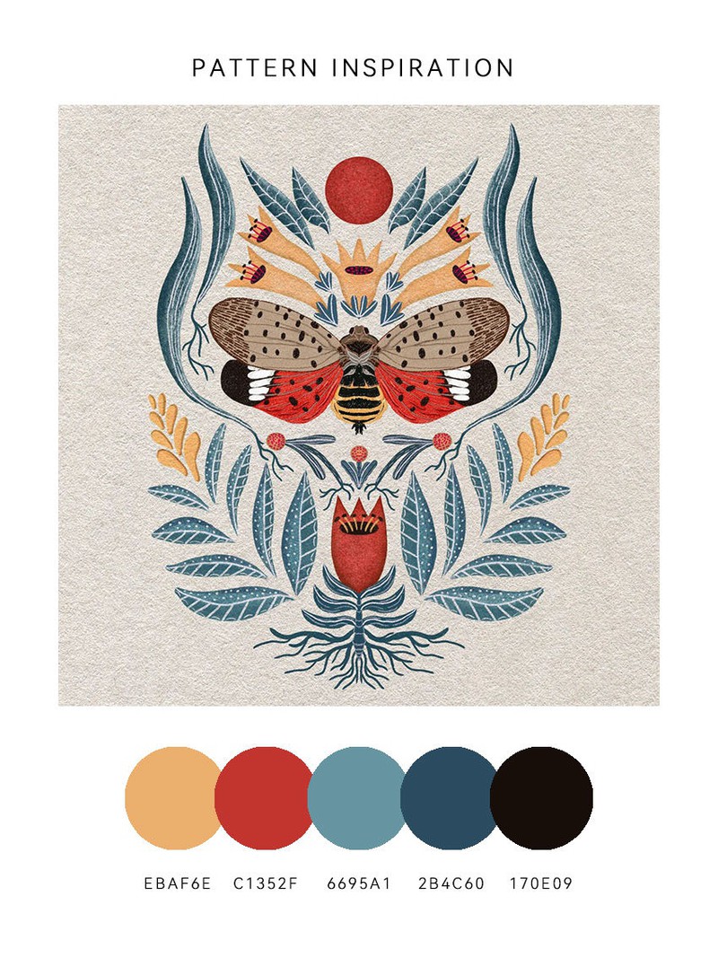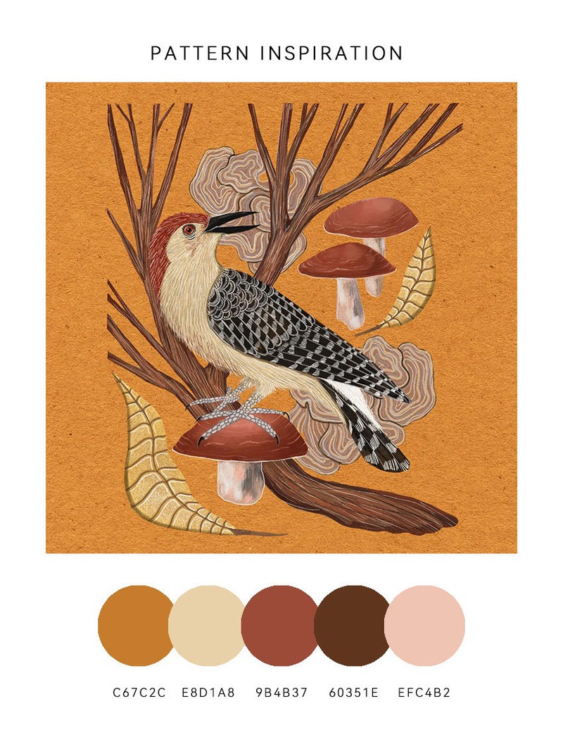 图案灵感|艺术家Sarah Kiser的自然诗意画作在北欧艺术家 Sarah Kiser的作品中动物往往是重要的主角,占据中心位置,花草、蘑菇等植物点缀其中,将动物结合植物,打造出充满奇幻风格的艺术作品。从色调到构图有着浓厚的神话色彩,让人看见自然万物的生命力。在色彩方面,Sarah Kiser 没有使用大胆鲜明的色调,而是以明度较低的色彩,打造出一幅幅致敬自然神秘力量的画作。