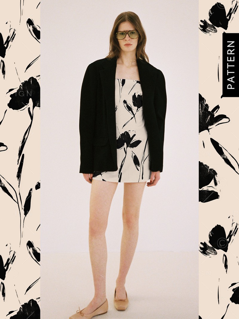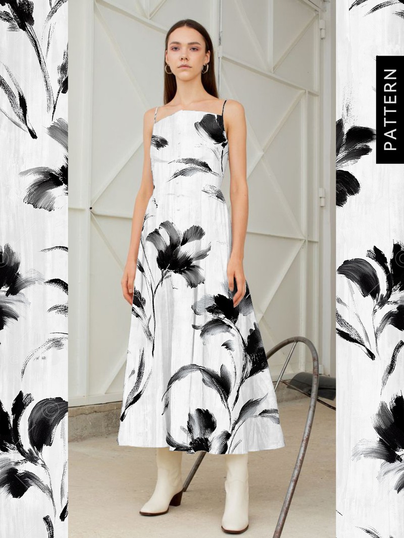 关键词:黑白,年轻女装,时尚,黑白花,印花连衣裙