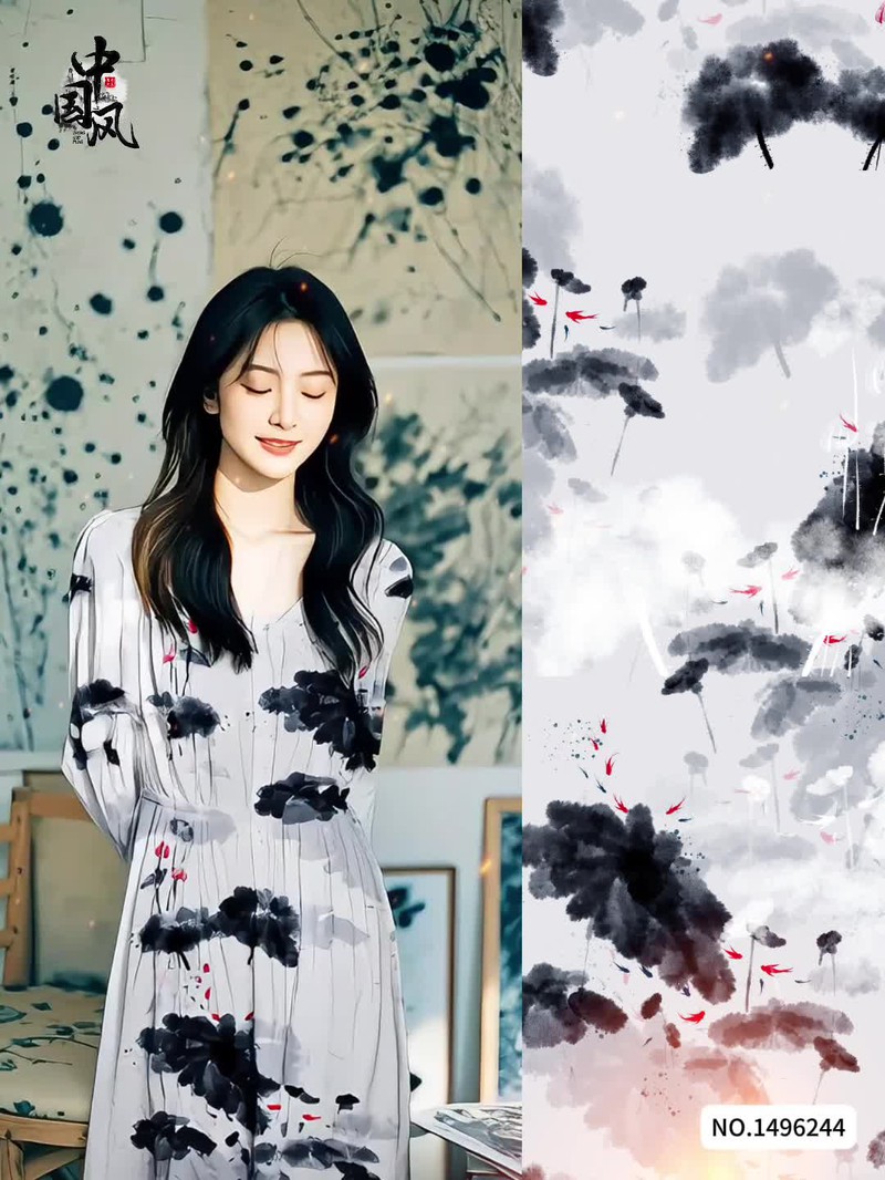 关键词:国风,印花连衣裙,华亿平台推荐,华亿平台设计,水墨风