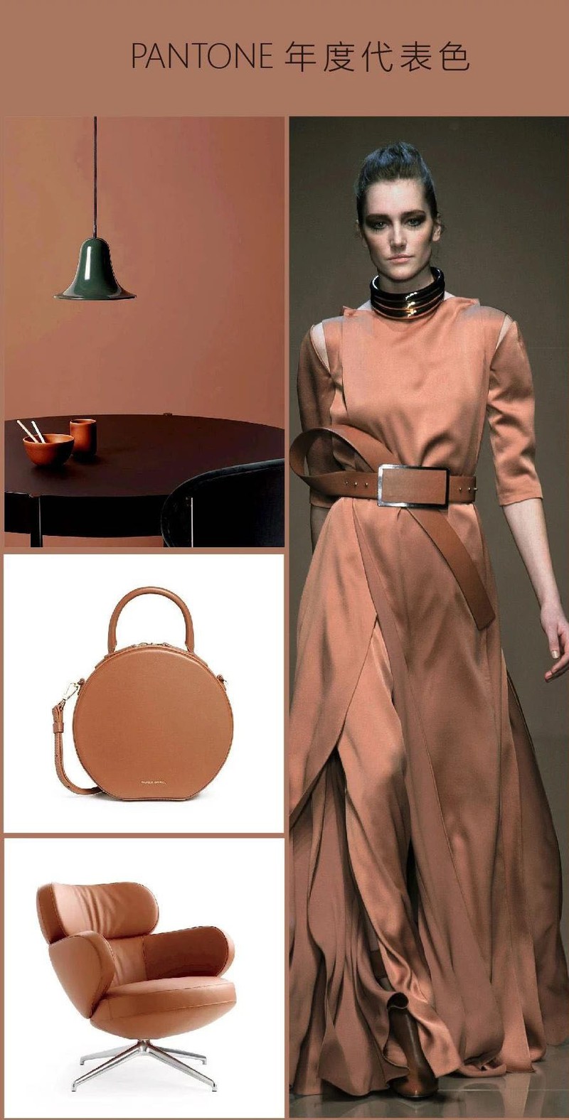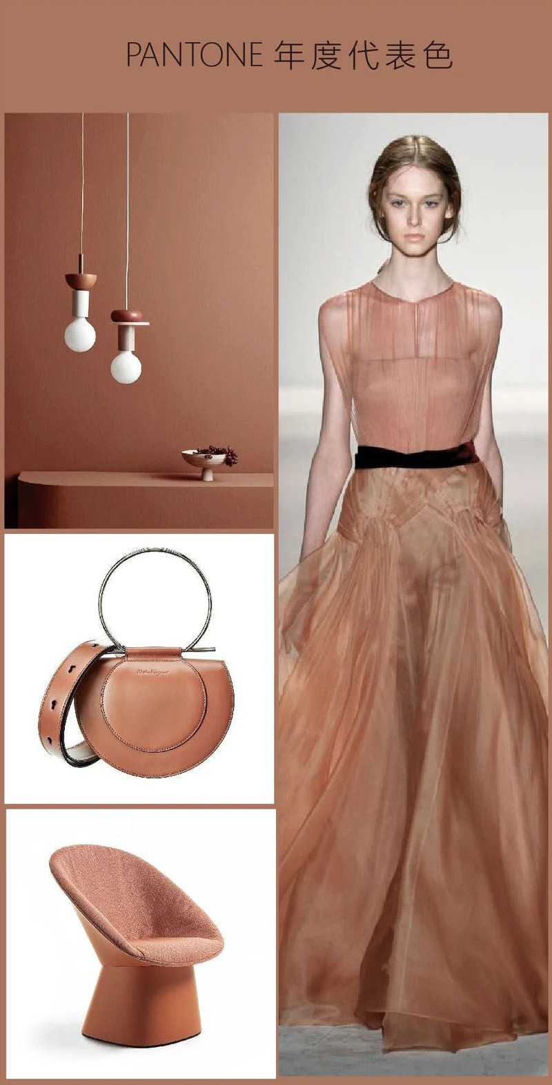 是一种温暖柔和的棕色,一个适合秋冬的色彩。它属于温暖又有格调的美拉德色系。其灵感来源于可可、巧克力和咖啡等食物,优雅中有一种自然质朴的美。可带给人温暖舒适、高级时尚的视觉体验。摩卡慕斯是一种既谦逊又奢华的经典色彩。它超越了传统棕色的 “朴实” 形象,融入了优雅的光彩。通过其感官温暖,它将我们包裹在舒适与宁静的氛围中,体现了一种细腻的优雅和自然的精致,表达了一种深思熟虑的放纵。