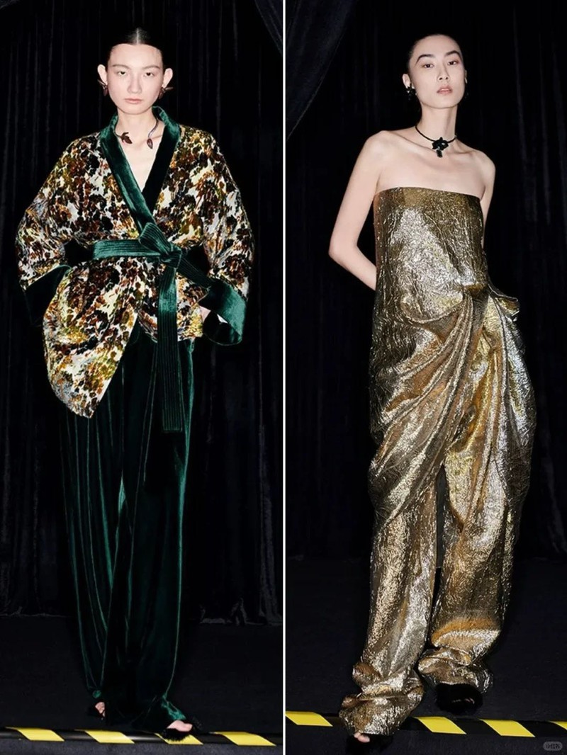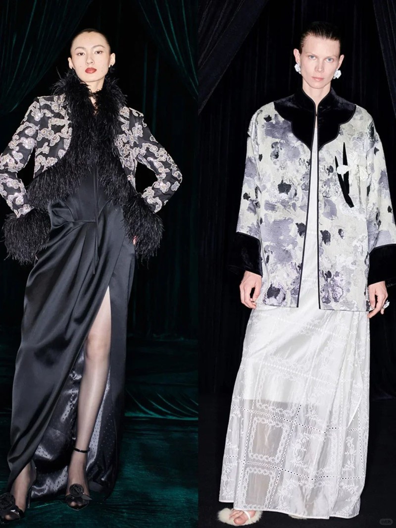 什么是中式老钱风中式老钱风是指以中国传统文化为基础,融入现代时尚元素的风格趋势,既关注中式的质感与奢华贵气,同时结合现代审美,综合呈现出别致的东方魅力。它是中式风的延伸,同时又引入西方老钱风的概念,相比传统中式风格女性化的线条及元素在缩减,更加强调华贵、庄重和典雅,展现了古典和现代的完美结合,与中国传统文化相得益彰。 中式老钱风有什么不同相较于空山新竹风的清新,中式老钱风更注重融入社会,展现入世之美。时装以流畅利落的廓形线条和清冷内敛的色调为特点,展示出东方风骨的韵味。 关键色彩在色彩上,中式老钱更多追求的是穿搭背后的“故事感”和“文化气息”,既有深沉内敛的一面,又有雍容华贵的一面,偏爱经典和高级的色调,多选择低调的中性色彩,如深棕,墨黑,米白,甜玉米,富有金,皮革褐,乳酪色,中国红,银色,鹌鹑色等,不仅体现出奢华感,还能够匹配不同的季节和场合。 关健元素与单品中式立领,斜门襟,流苏,雕绣,镶嵌,刺绣,撞色等,