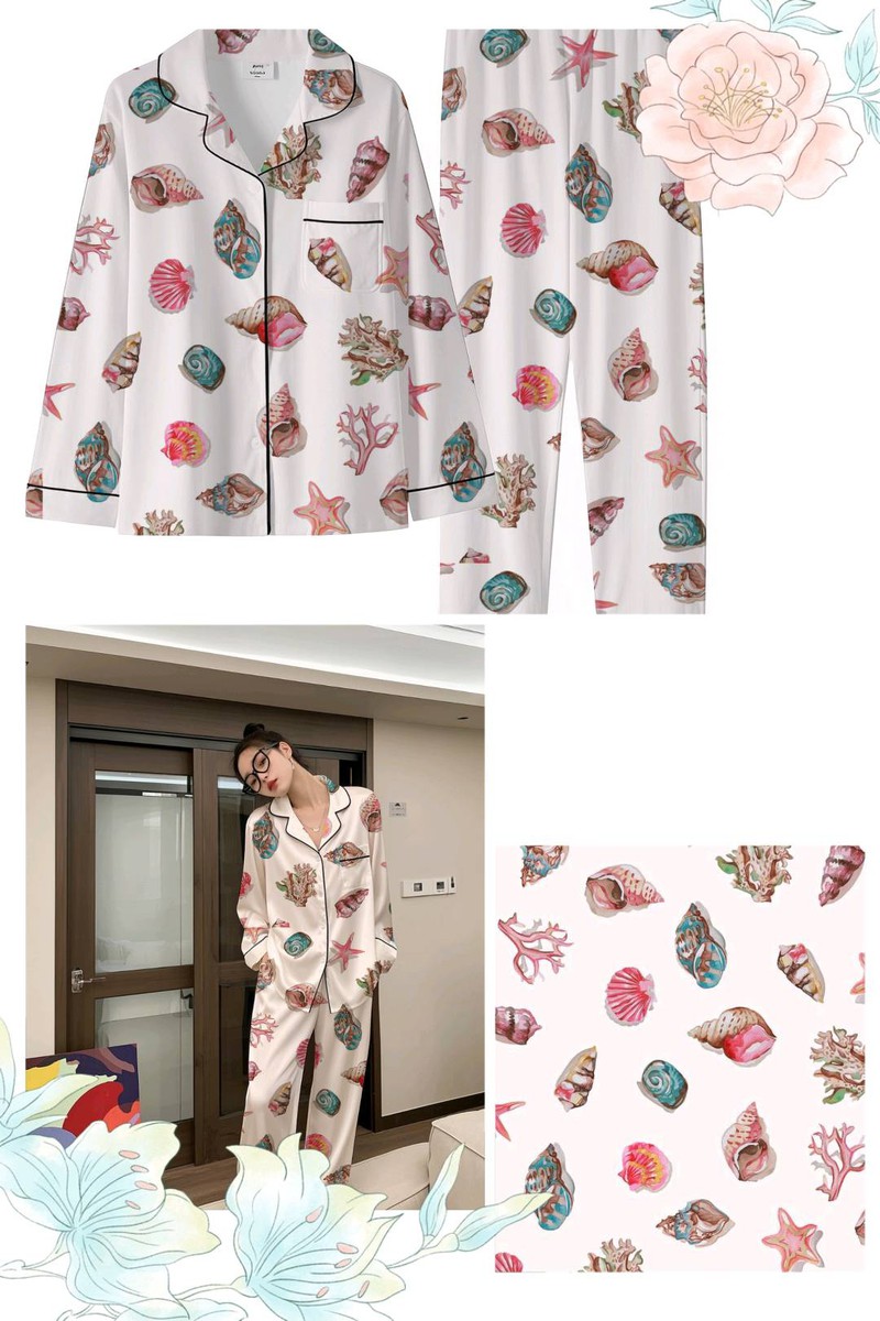 穿上贝壳印花睡衣,邂逅海滨梦境般的舒适。