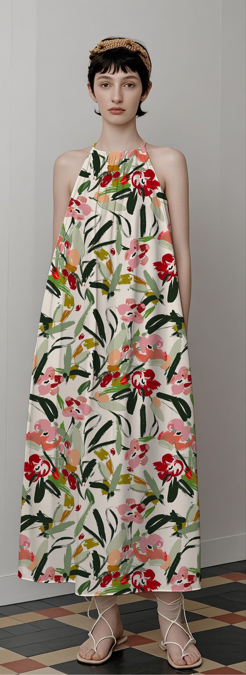 关键词:2025春夏,印花,图案,手绘花卉,女装