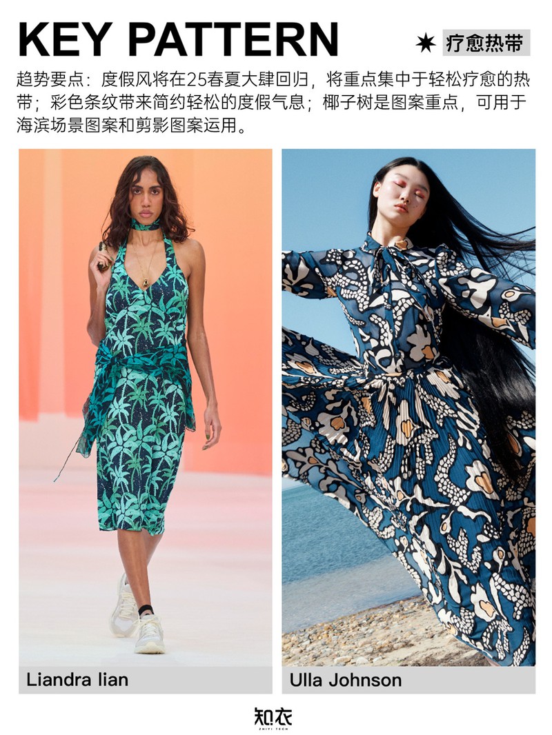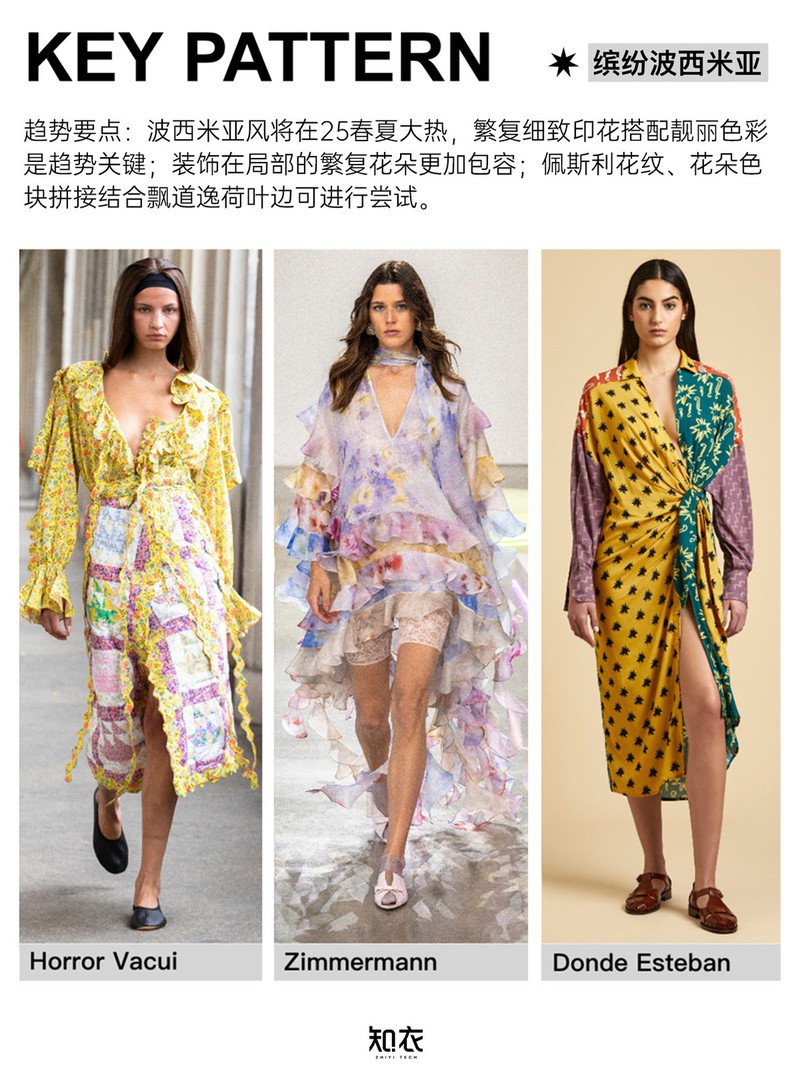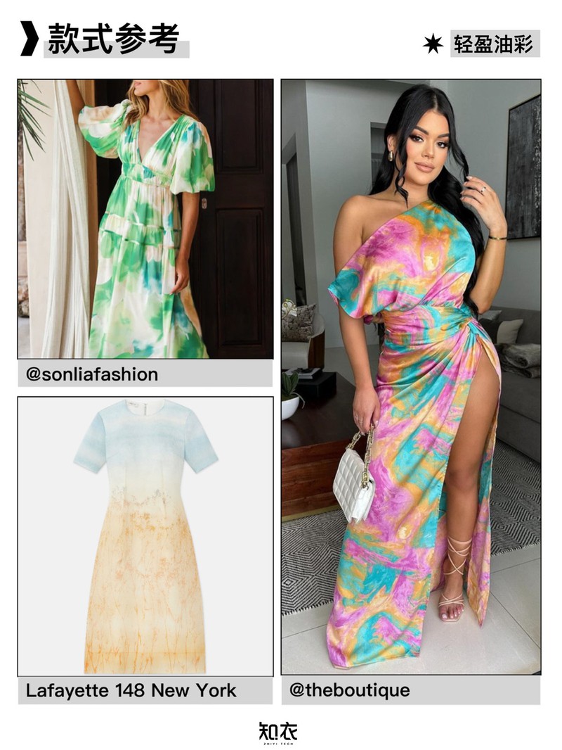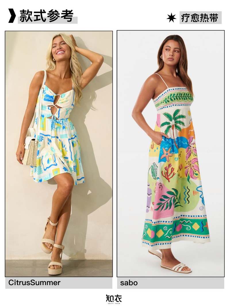 跨境连衣裙盘点:这些印花图案卖疯了! 新发布《2025春夏跨境电商连衣裙关键图案趋势》,盘点总结了缤纷波西米亚风、轻盈油彩、疗愈热带等关键印花图案与对应的款式推荐,作为2025春夏跨境连衣裙开发参考~内容来自:知衣时尚数据研究院