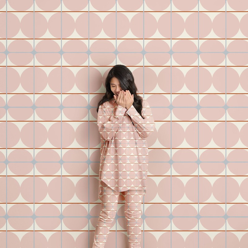 现代几何印花,带有淡淡的复古灵感,让人想起游泳池底部的手绘马赛克瓷砖,营造出田园诗般的欢乐夏日景象。
