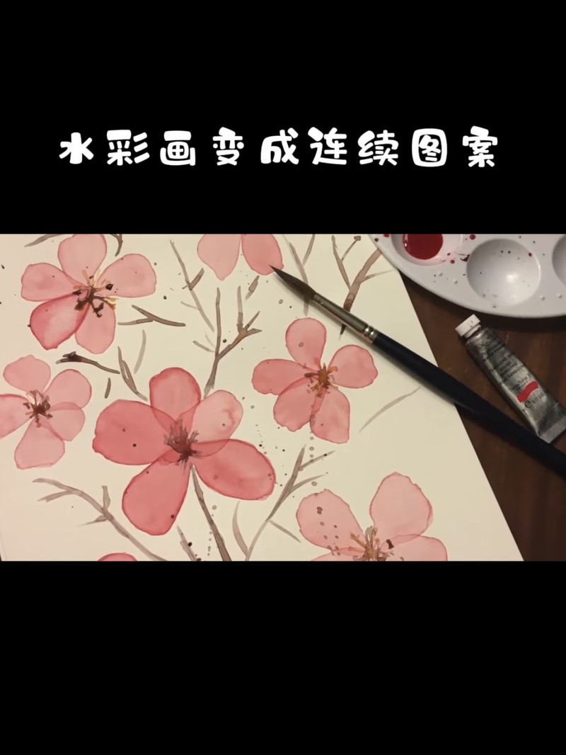 水彩手绘花卉设计成四方连续图案