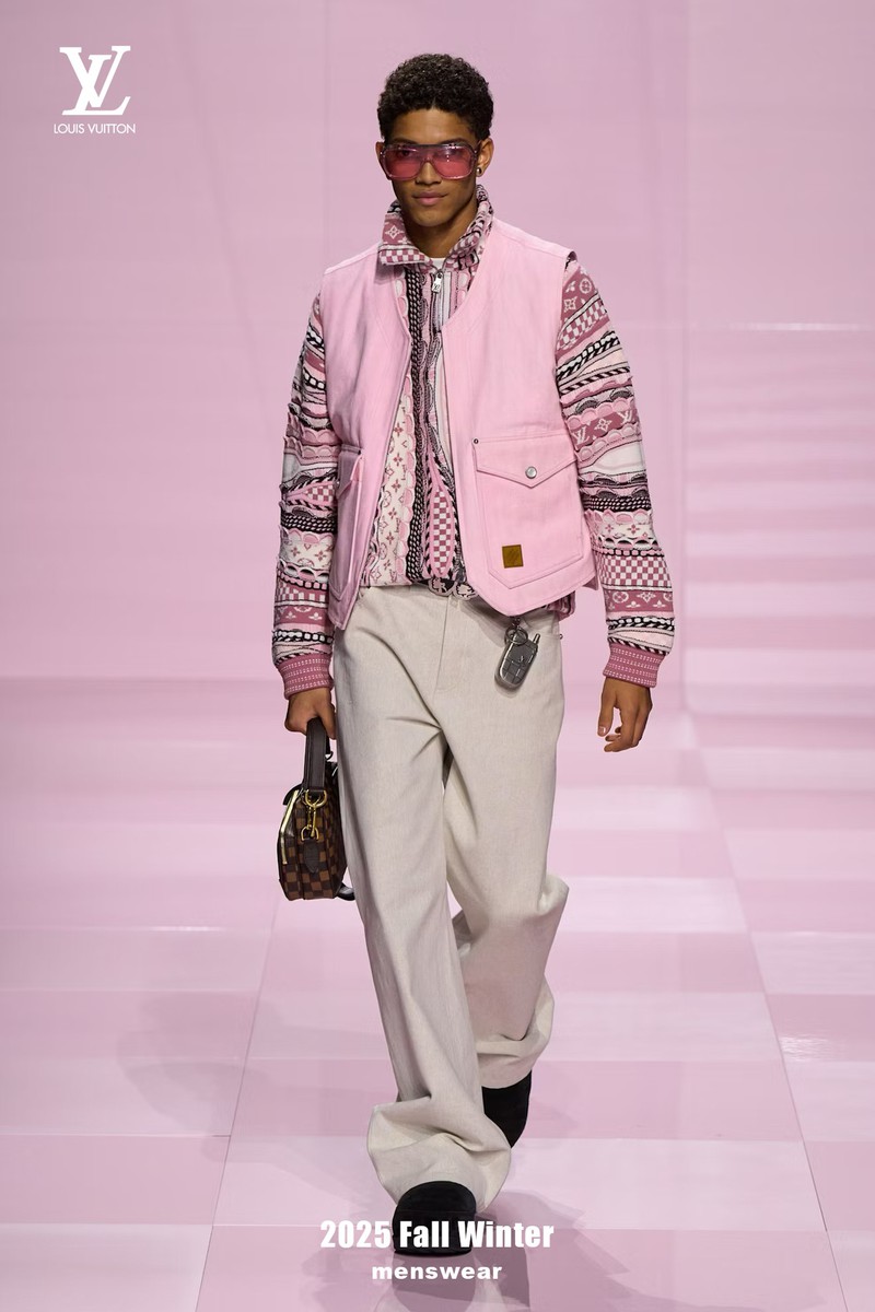 Louis Vuitton Menswear F/W 2025在巴黎男装周上的时尚盛宴,这场大秀在巴黎卢浮宫的Cour Carrée方形广场举行,由男装创意总监Pharrell Williams菲董与Nigo携手合作呈现。