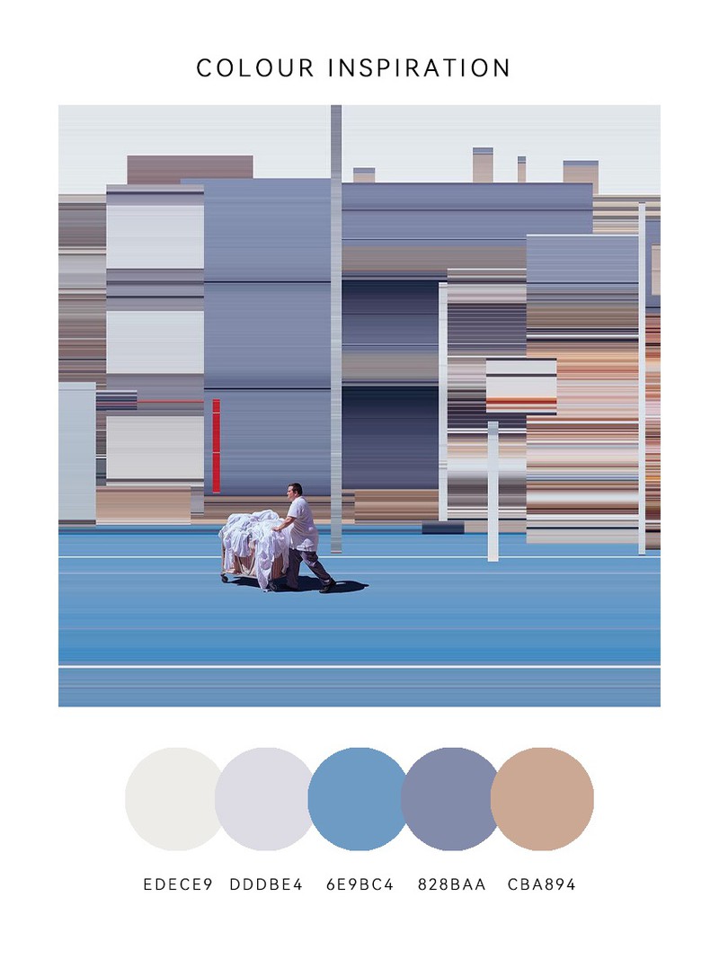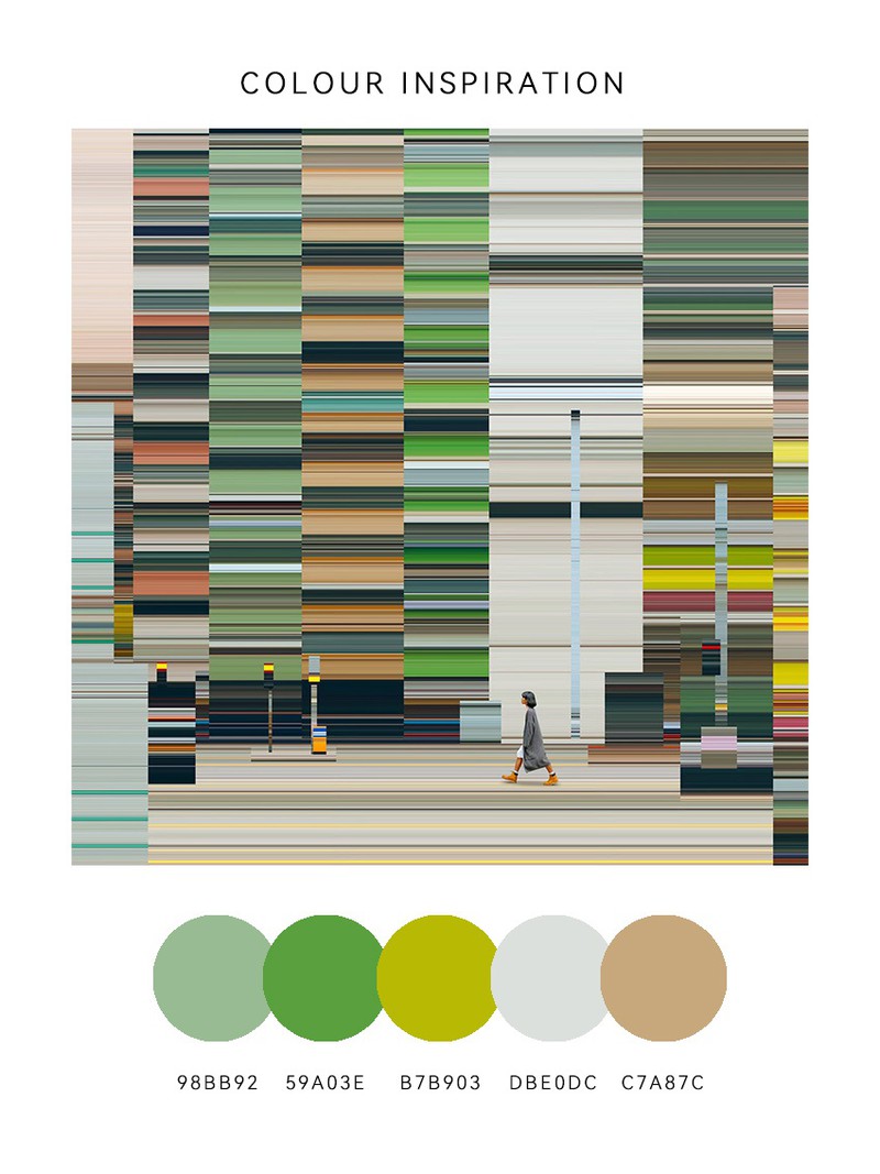 Anton Repponen将每张图像都凝固在某个时刻:周围环境似乎在混乱的时间中被扭曲了,而中心人物在扭曲的时间结构中保持不变。拉长的景观、扭曲的建筑和超现实的氛围,营造出迷人的视觉氛围,是不是为你的几何图案设计带来灵感了?