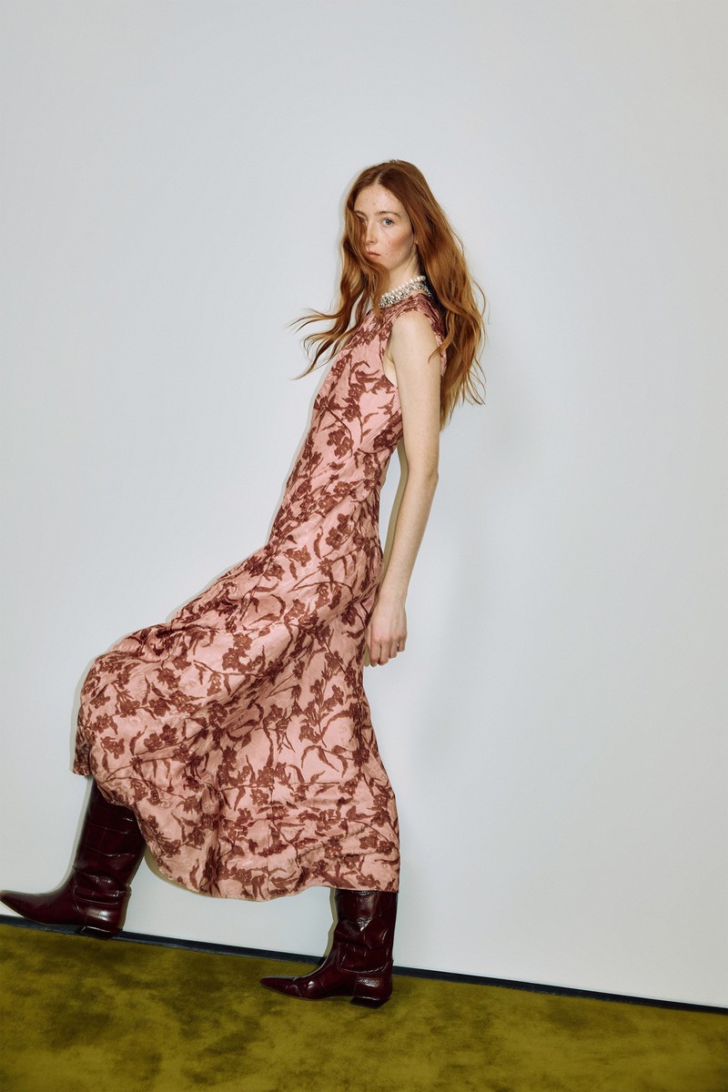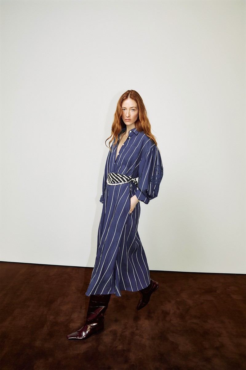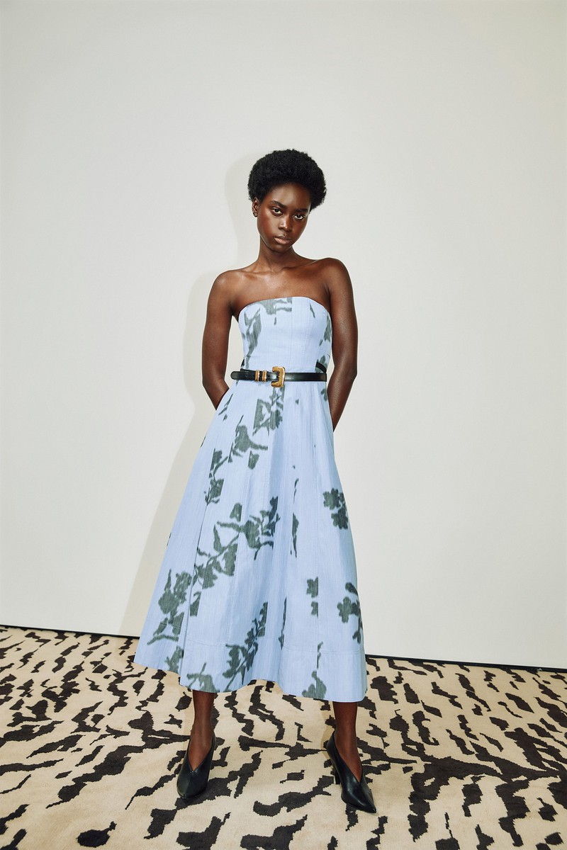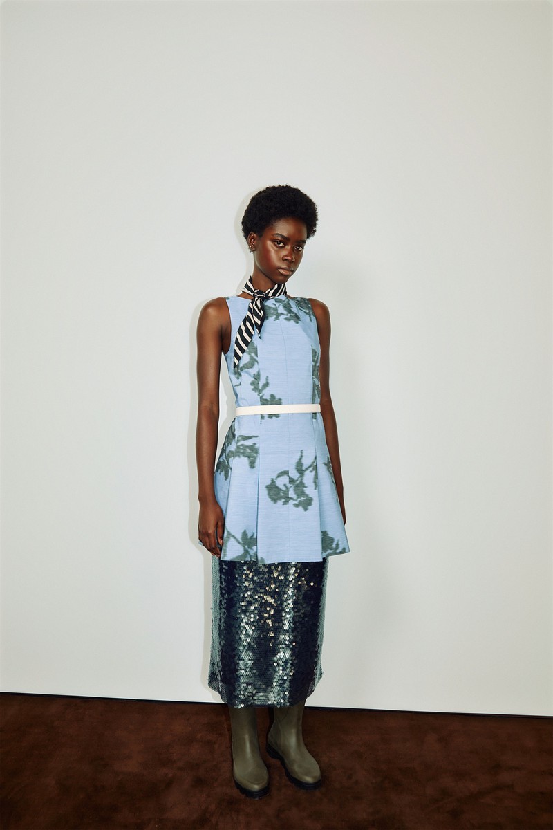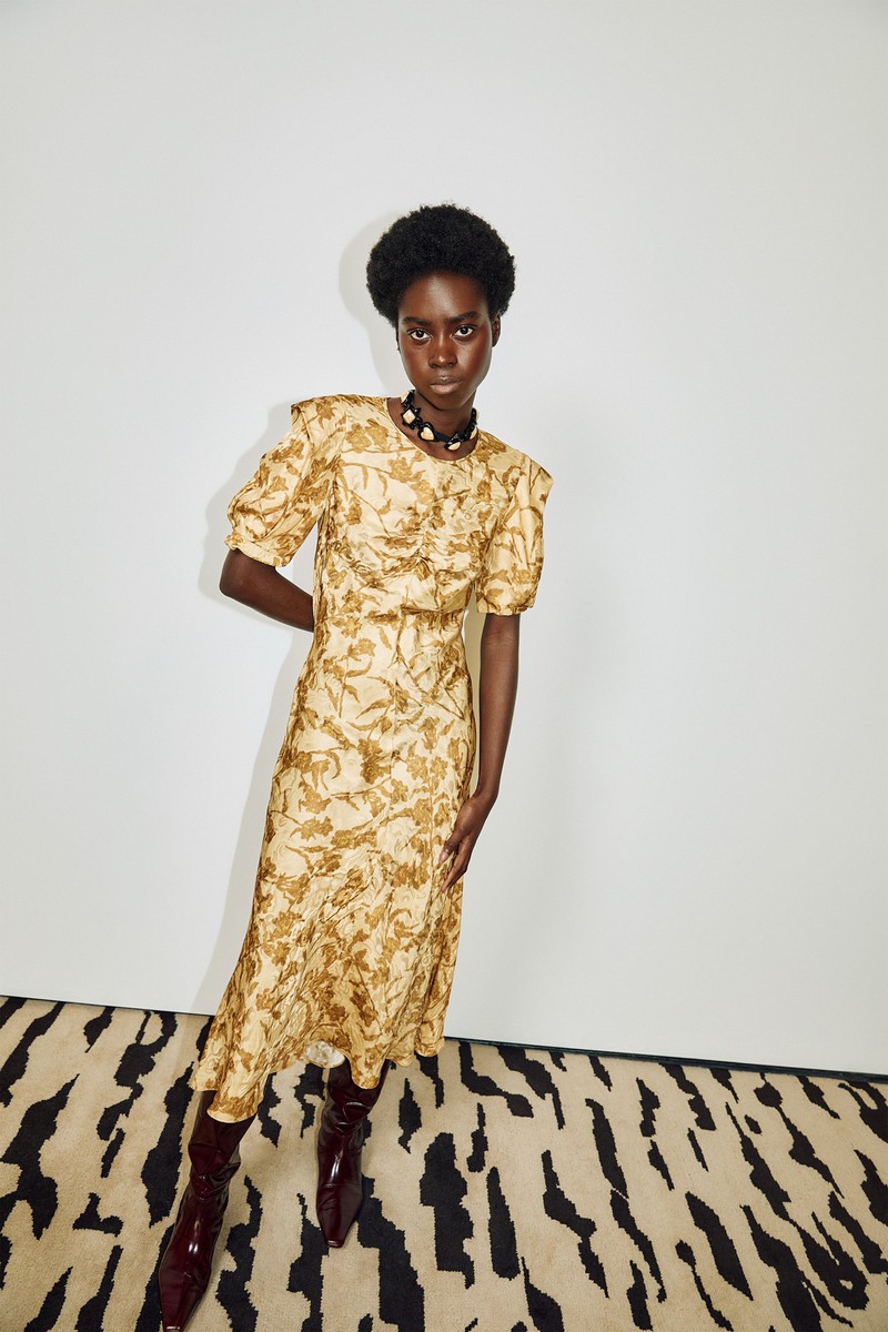 在展示其秋季系列时,Tanya Taylor解释说,她希望“简化设计,让整体感觉更简洁,更真实可信。”同时,这位设计师还希望“为我们的穿着方式注入一点幻想色彩。”最终呈现的效果并非低调奢华,但也绝非过于张扬。一抹奶油黄为秋日色调增添了亮色,麂皮和皮革是主打面料,却出人意料地与印花和装饰元素搭配。印花是Tanya Taylor的标志性元素,模糊的手绘格纹令人眼前一亮,拼接花卉印花连衣裙也很出彩。