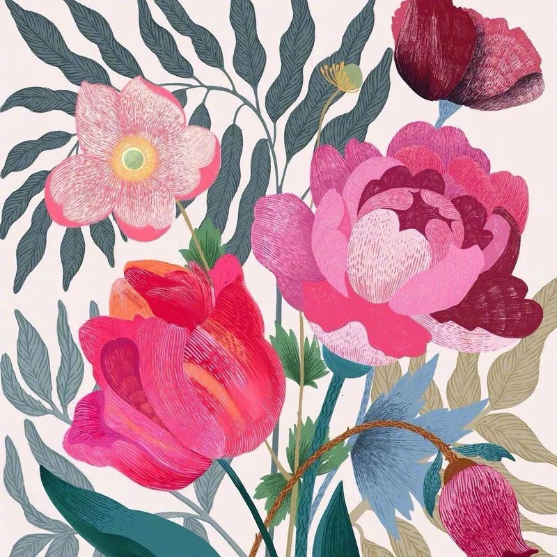 关键词:插画,花卉,手绘,艺术,配色