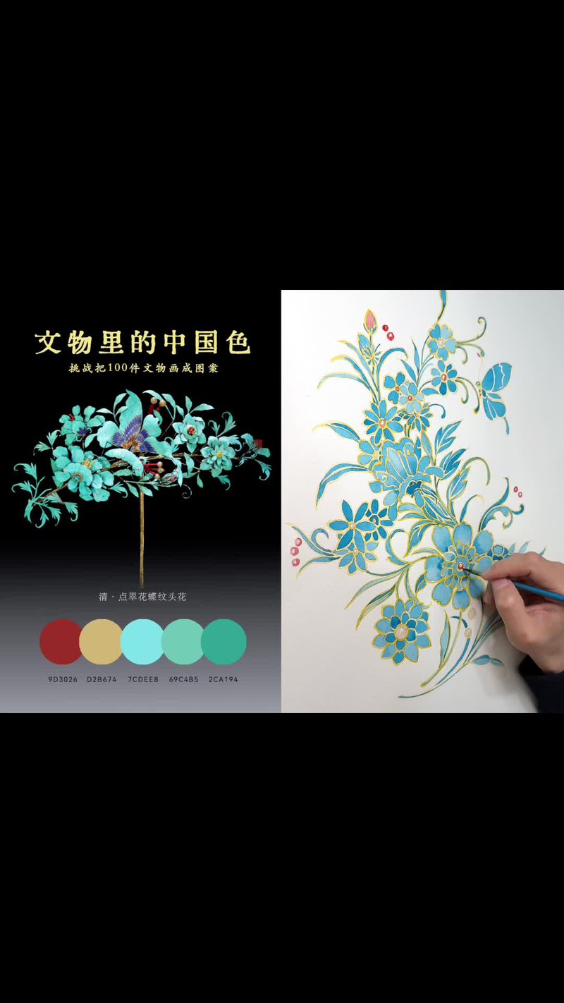 文物里的中国色|一抹蓝调,青花瓷手绘花卉今天的手绘视频为大家
