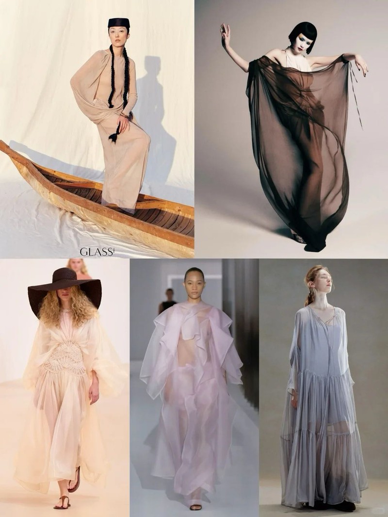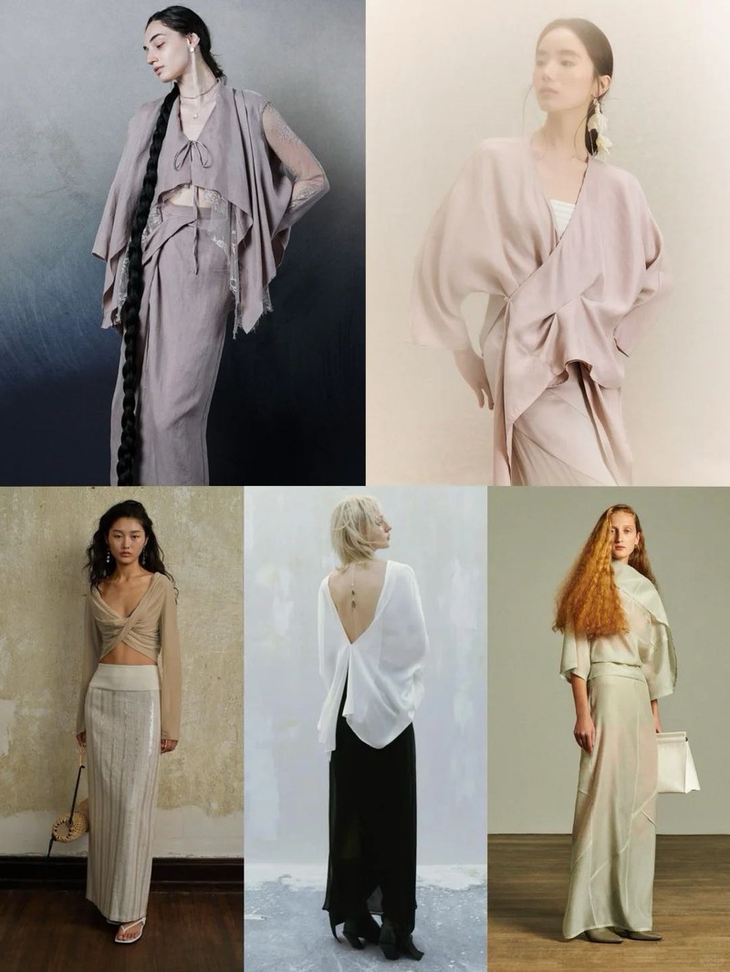 ▍风格主题词流动艺术·柔韧轮廓呼吸肌理·疗愈力量空灵织韵·情绪共振 ▍市场趋势洞察 "心灵疗愈美学"搜索量持续破峰,服饰正成为当代女性精神对话的载体。本季时装周呈现东方哲思与现代剪裁的完美碰撞,自然褶皱与液态垂坠重构身体语言,用织物谱写当代女性的精神诗篇。柔韧美学不仅是造型革命,更是都市人群寻求内外平衡的情绪出口,在刚柔并济中完成自我重塑。