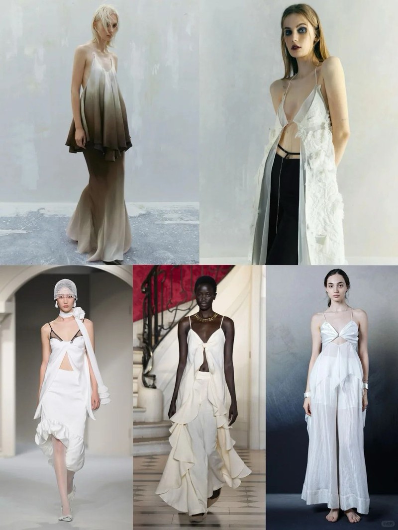 4. 光影叠穿战袍细吊带搭配幻彩欧根纱,内层肌理打底+中间透光过渡+外层朦胧罩衫,打造动态层次美学。