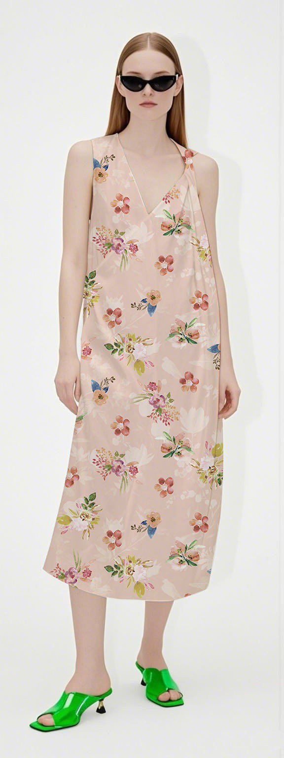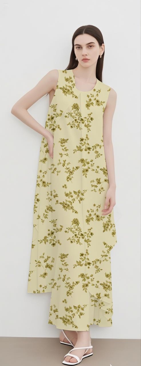 关键词:朦胧花卉,晕染,华亿平台推荐,树植绿叶,女装连衣裙