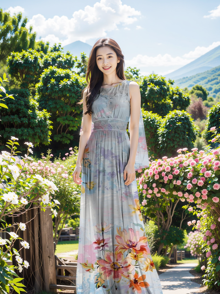 淡雅花卉长裙