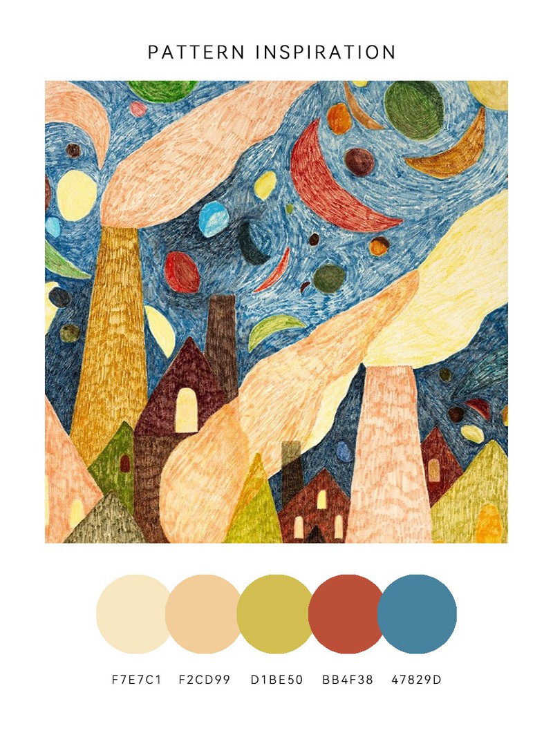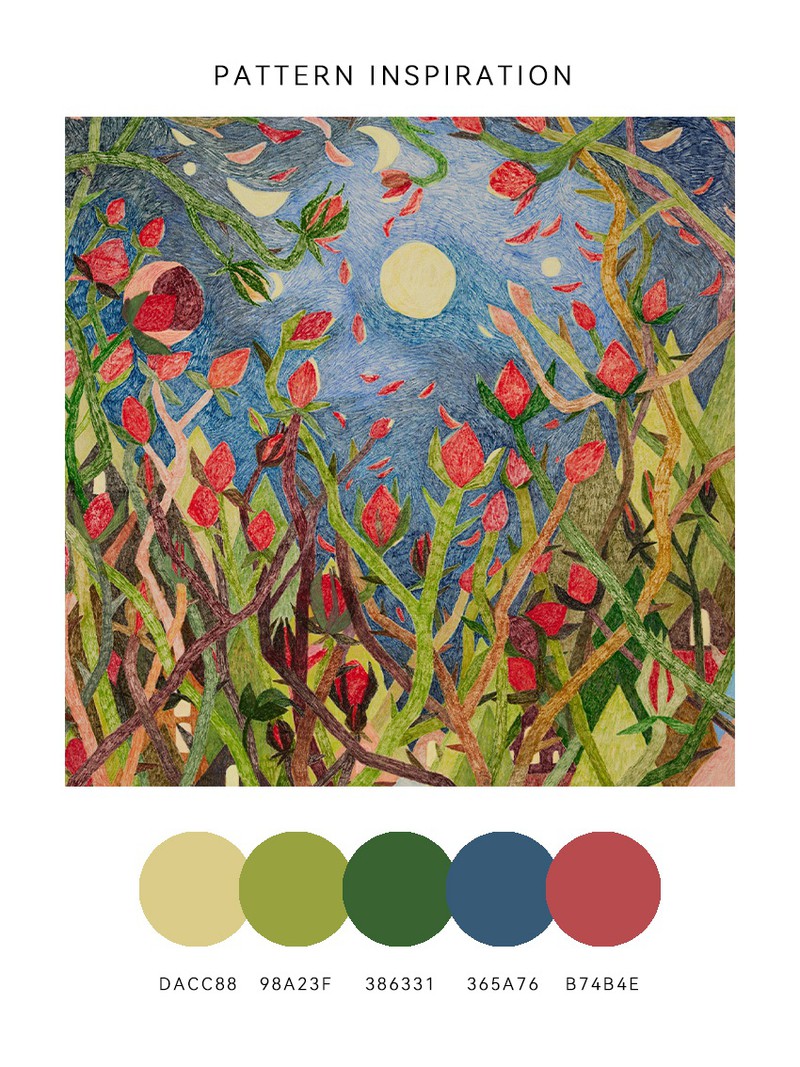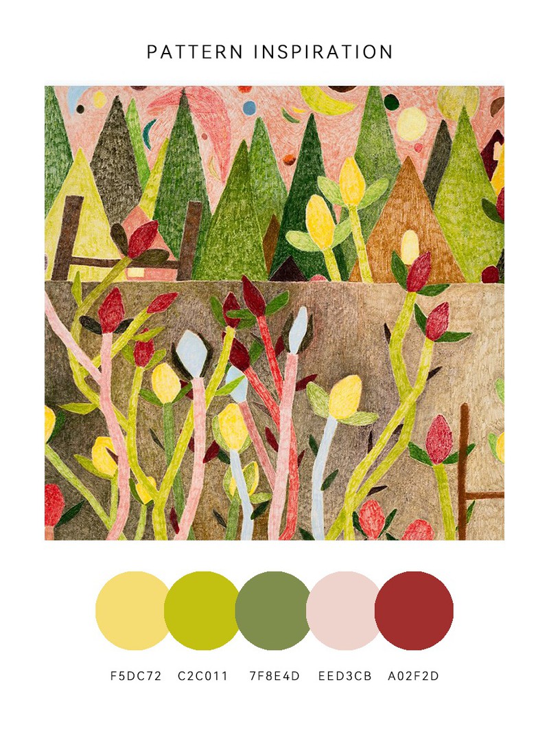 图案灵感|伦敦艺术家Lucy Mahon的复古插画Lucy Mahon是一位出生于沃特福德、现居伦敦的艺术家,她的插画艺术为我们带来舒适、怀旧的感觉,花卉、植物、屋顶等生活中的日常是主要的绘画题材,色彩运用极具个人特色,中明度的红黄蓝绿的复古色调让画面呈现出浓郁的氛围和怀旧的气息。