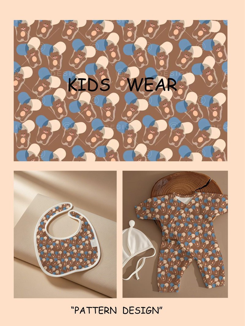 可可爱爱的手绘小熊和色块几何一起