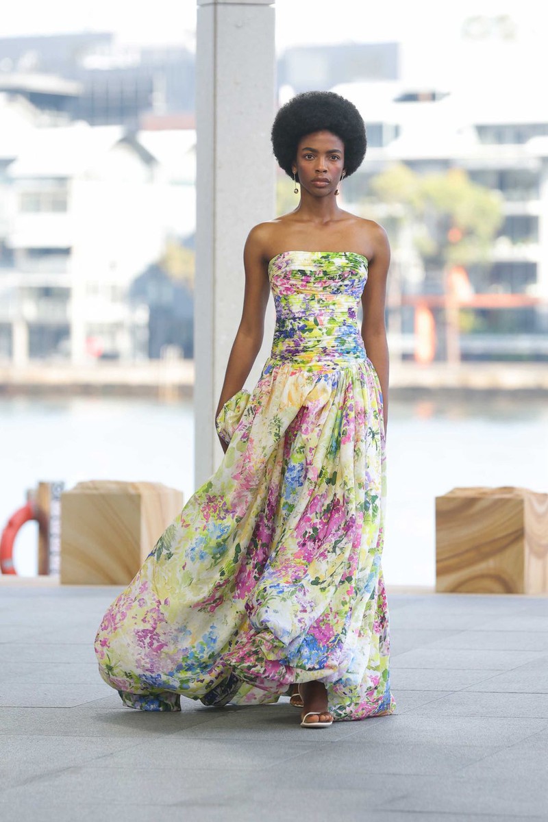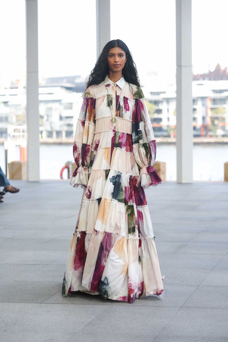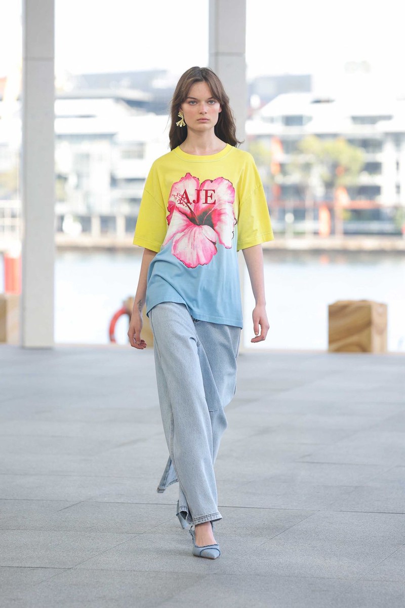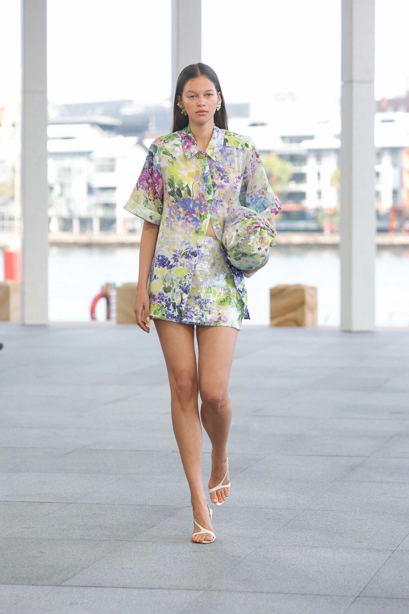 看秀场图案|AJE 2026早春的浪漫水彩印花AJE 2026早春系列设计灵感来源于法国的诺曼底地区和印象派画家的作品,设计师从大自然中寻找灵感,捕捉迷人的氛围和光线,所以这个系列中有很多透明元素,不同形状的流畅感,还有花朵绽放的景象。天空的湛蓝色晕染开来,在服装上形成渐变色的图案;水彩手绘的大花朵点缀在上衣、裤装、连衣裙的下摆,共同展示了澳大利亚品牌的浪漫。