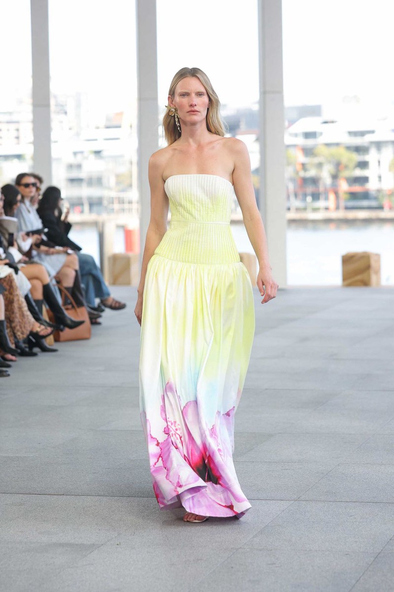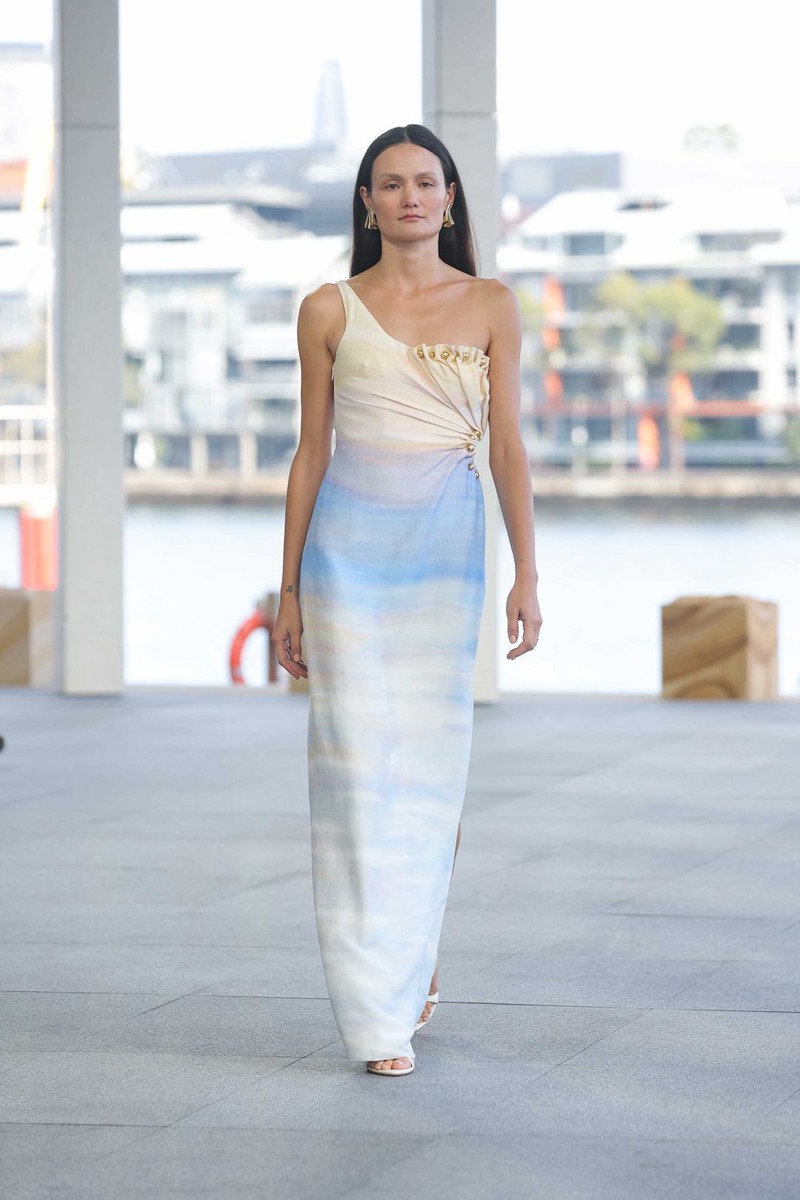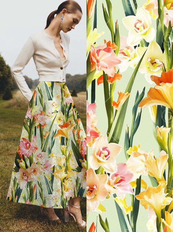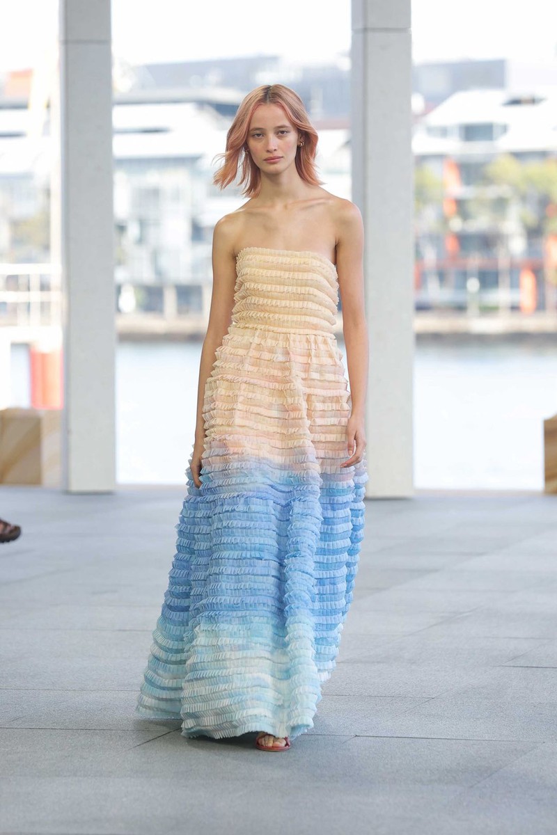 看秀场图案|AJE 2026早春的浪漫水彩印花AJE 2026早春系列设计灵感来源于法国的诺曼底地区和印象派画家的作品,设计师从大自然中寻找灵感,捕捉迷人的氛围和光线,所以这个系列中有很多透明元素,不同形状的流畅感,还有花朵绽放的景象。天空的湛蓝色晕染开来,在服装上形成渐变色的图案;水彩手绘的大花朵点缀在上衣、裤装、连衣裙的下摆,共同展示了澳大利亚品牌的浪漫。