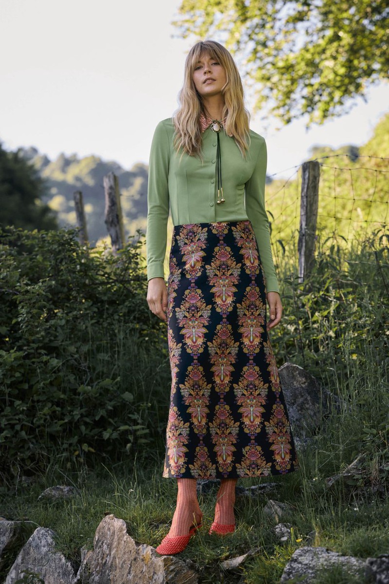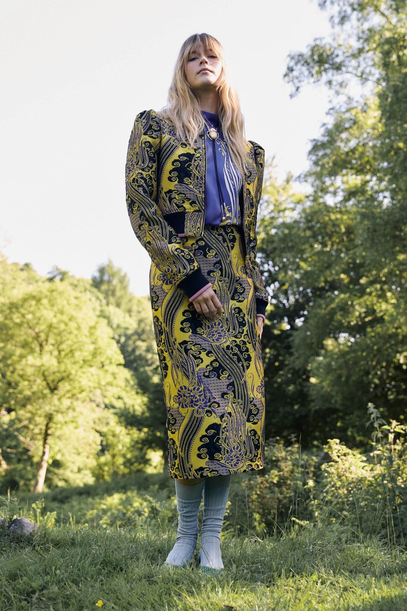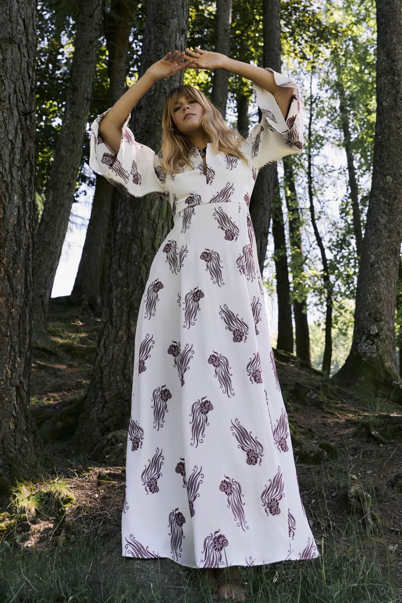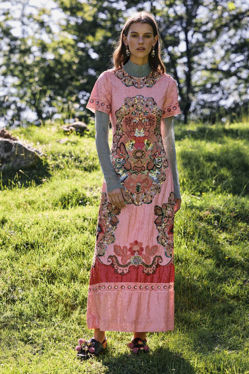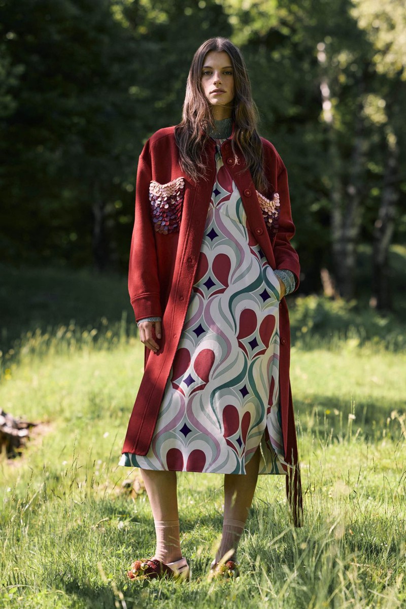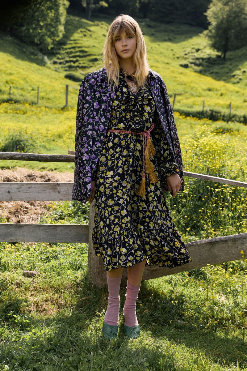 “让世界充满欢乐”是 La DoubleJ 的座右铭,创始人 JJ Martin 作为振奋精神的时尚先锋一路前行,将日常风格转变为一场充满高振幅印花的狂欢盛宴。印花或许是 LDJ 品牌存在的理由,整个系列围绕着印花元素展开,但是本季印花变得柔和了,图案的尺寸变大了,让一切都显得更舒展。视觉上的爵士风格变得柔和了,但那种迷幻、神秘的象征主义依然充满活力。与厄瓜多尔超现实主义艺术家贝托·瓦尔合作推出的“神奇生物”胶囊系列,这是一场棱镜般的休闲装幻想,充满了奇异的动植物融合:火烈鸟绽放成锦葵,长着叶子的鹦鹉有着喙状的叶子,贝壳螺旋成昆虫变作的花朵,这既是一场精神之旅,也是一场睡衣派对,更是十足的“梦幻迪斯科”。