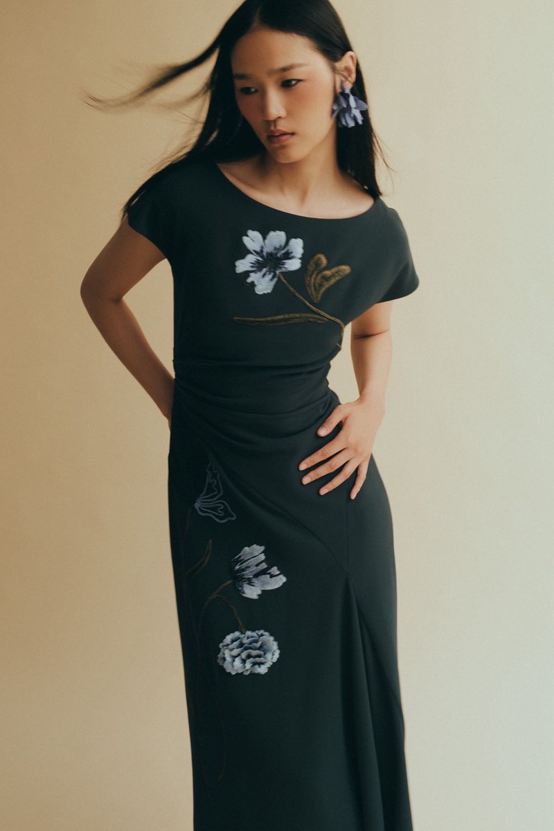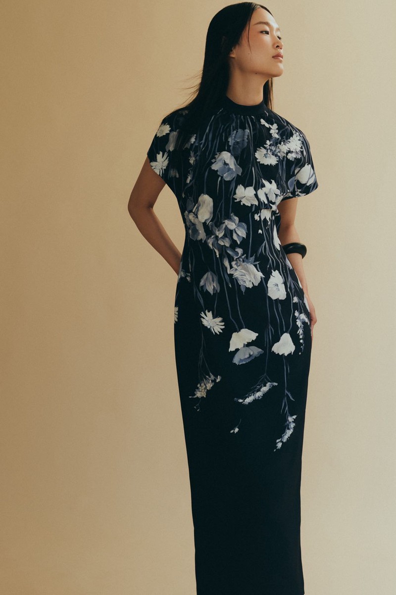 “野花的花海总是能深深吸引我。”Lela Rose这样说道,她如此形容其2026年度假系列的设计灵感来源。的确,类似蓟花的元素随处可见,从中长裙上的闪耀刺绣到带有蝴蝶结并以花朵形状收尾的衬衫,应有尽有。她的许多花卉图案都呈现出抽象的形态,或是垂落在裙子上,或是以 3D 打印的形式印在上衣上。她不再身处公园大道的郁金香丛中,而是置身于提顿山脉的紫菀花和蓟草的野花之中。不仅仅是花卉元素的运用有了变化,她也逐渐开始融入更多休闲风格的元素,更多地采用轻盈透气的面料。