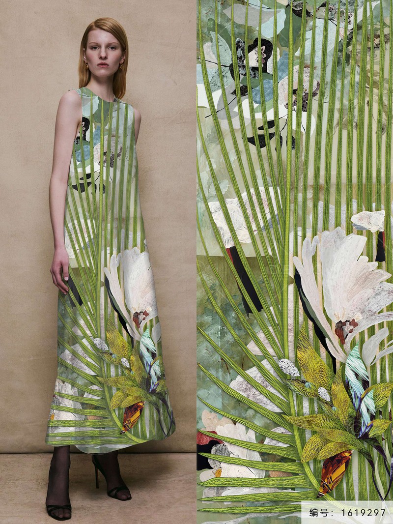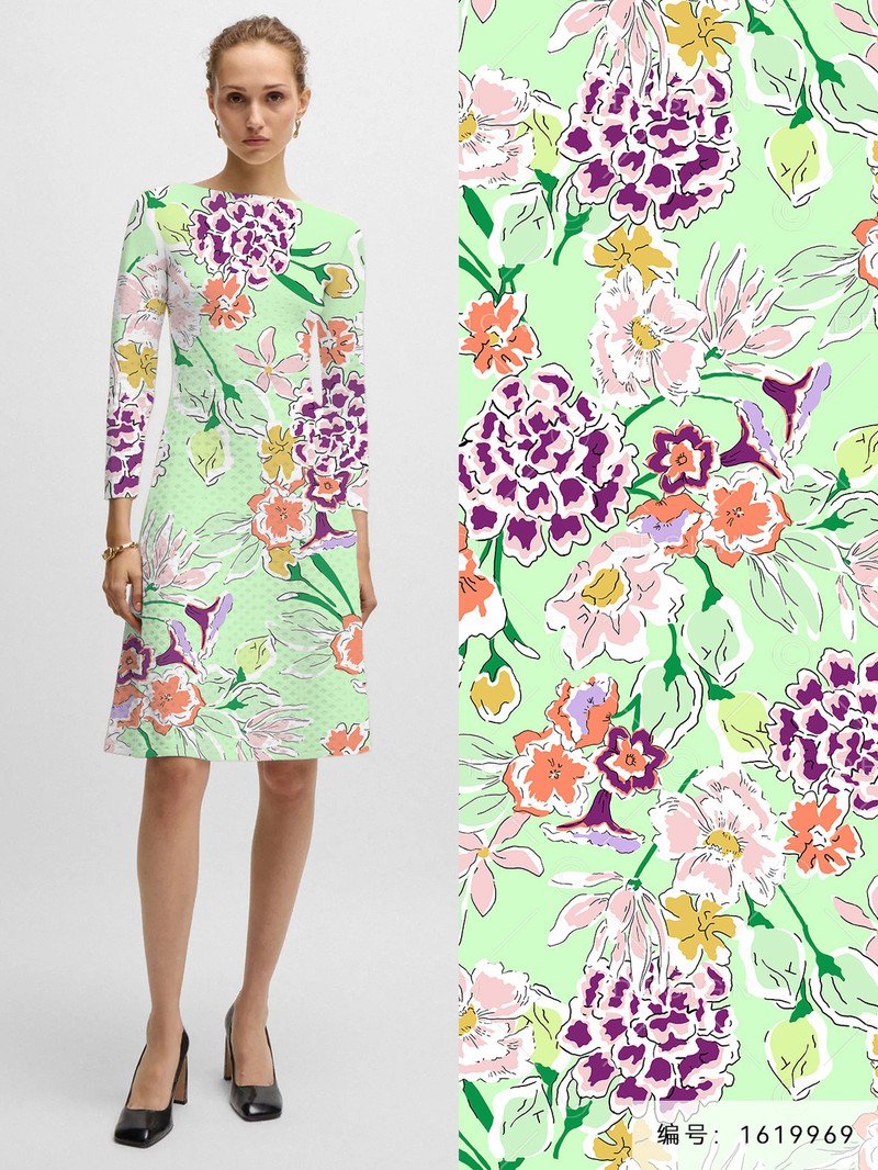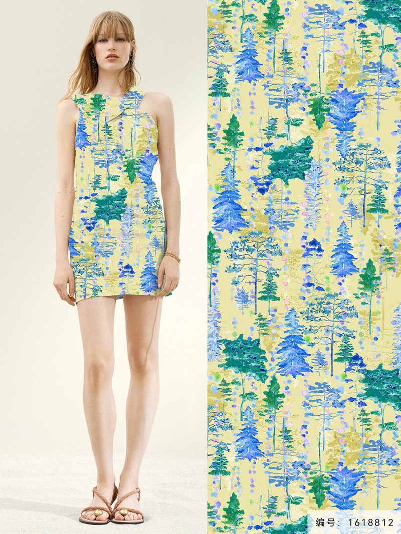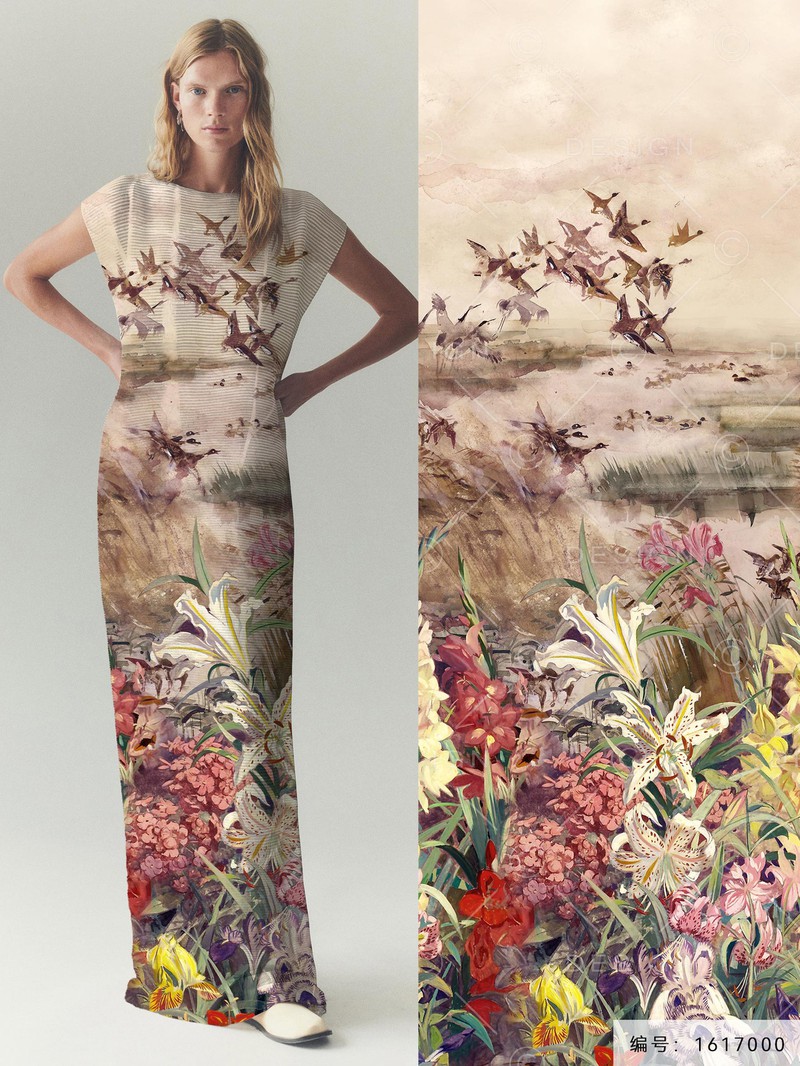 印花图案推荐-清爽碎花风格疾驰的列车上,窗外是一大片薰衣草,